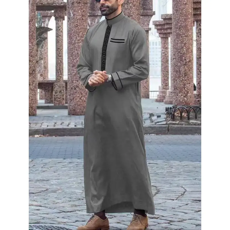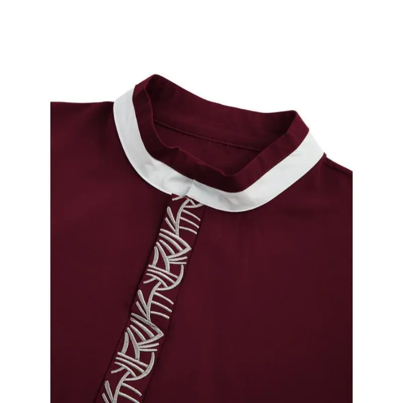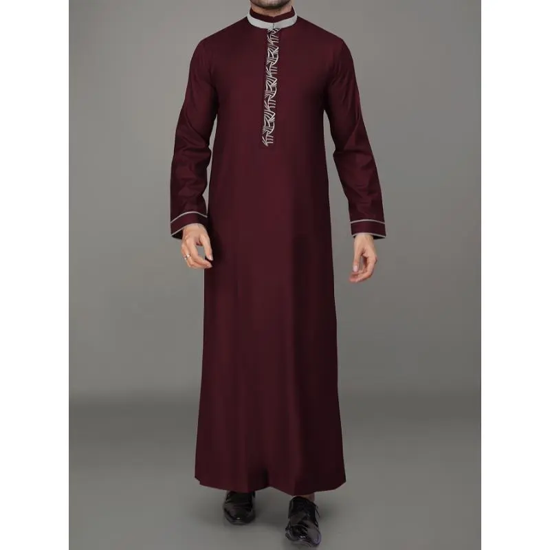 Retro Men's Clothing [Elegant Burgundy Kaftan] Burgundy Embroidered Kaftan - Men's Elegant Long Sleeve, Polyester Blend, Fish Scale Pattern, Stand Collar, Perfect for Ramadan and Eid al-Fitr Celebrations, Muslim Clothes