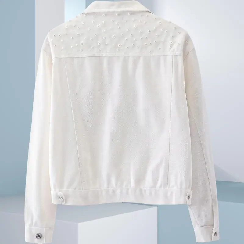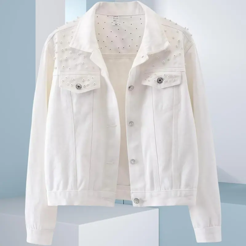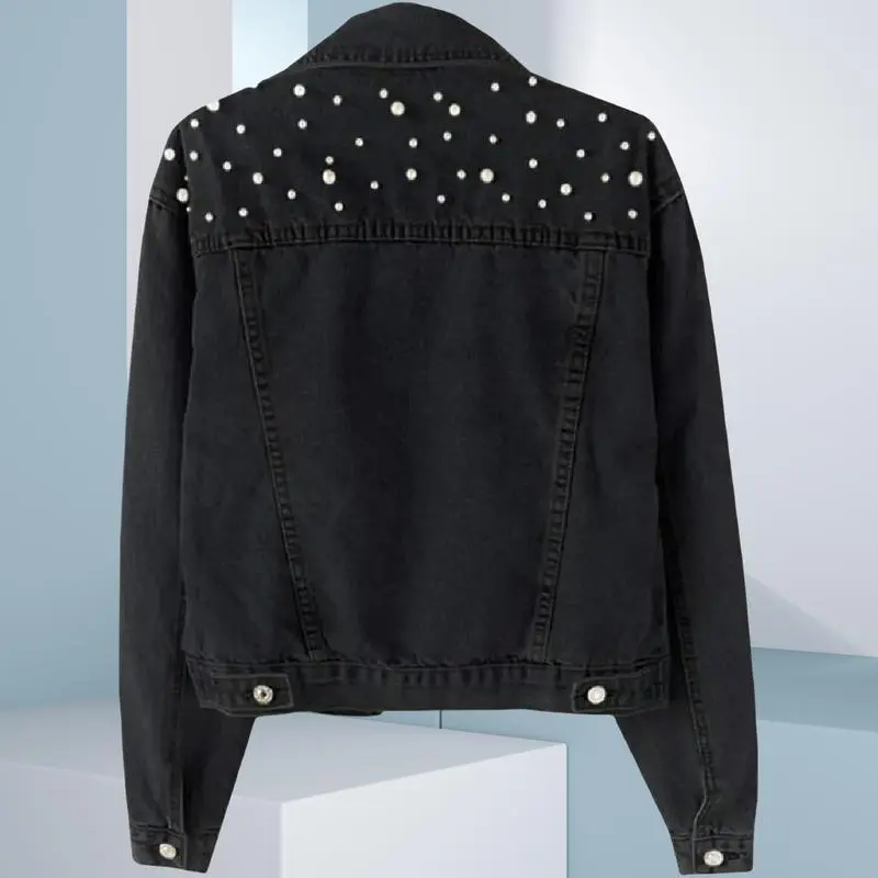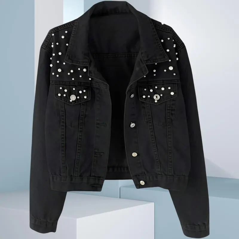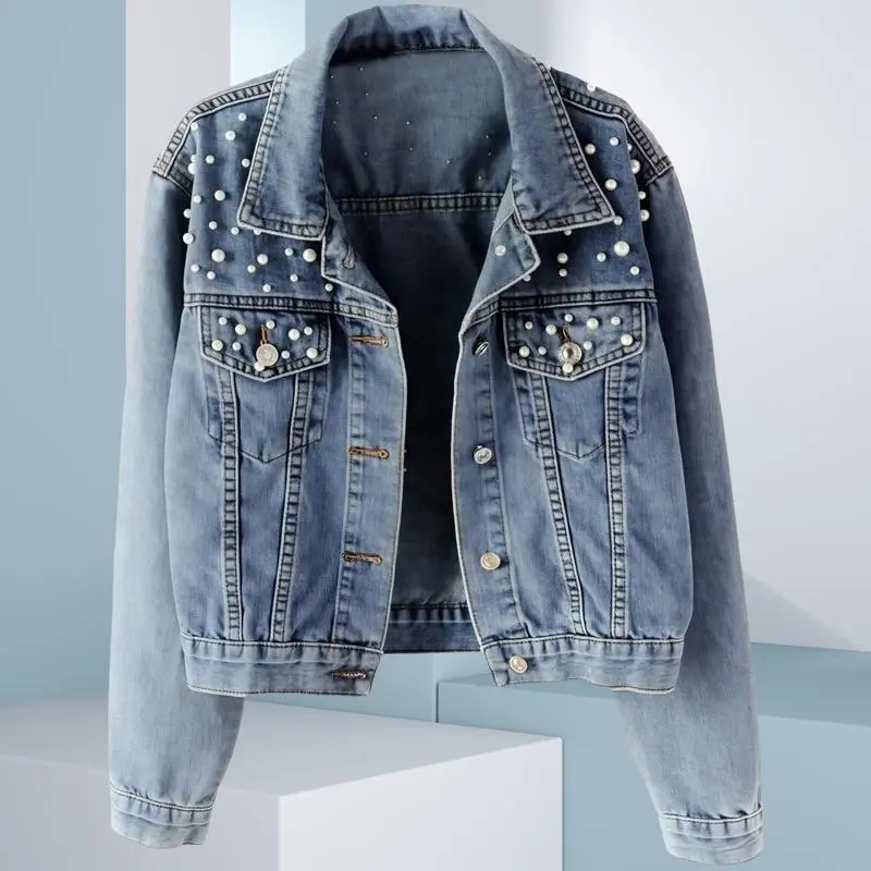 AutumnNewWomenDenimJacketEmbroideredPearlsBeadingCoat|PearlandCrystalStuddedDenimJacket|OversizedDenimBoyfriendJacket|SolidLapelBlazerJacketsforWomen