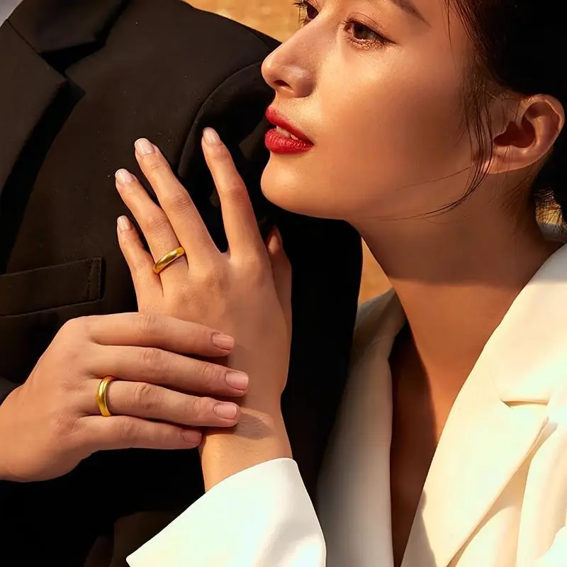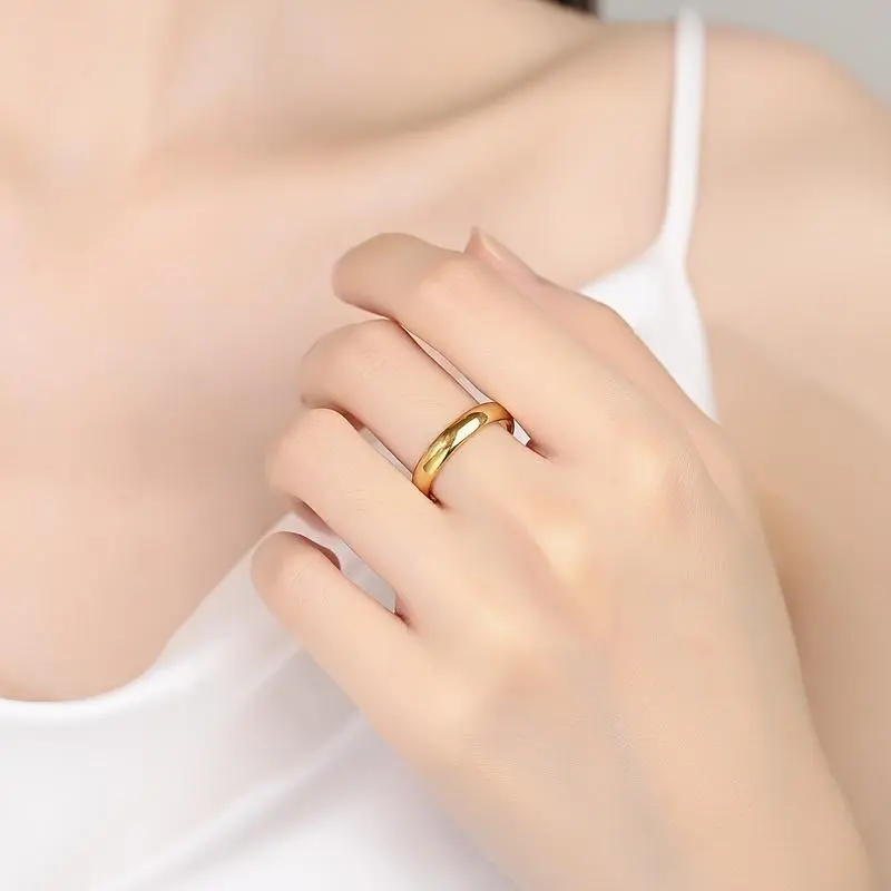 18K Gold Plated Stainless Steel Wedding Engagement Ring for Men and Women Daily & Nuptial Accessory, Ideal Valentine's Day Gift - Unisex Smooth Band