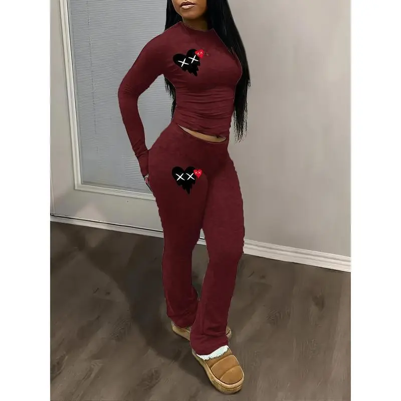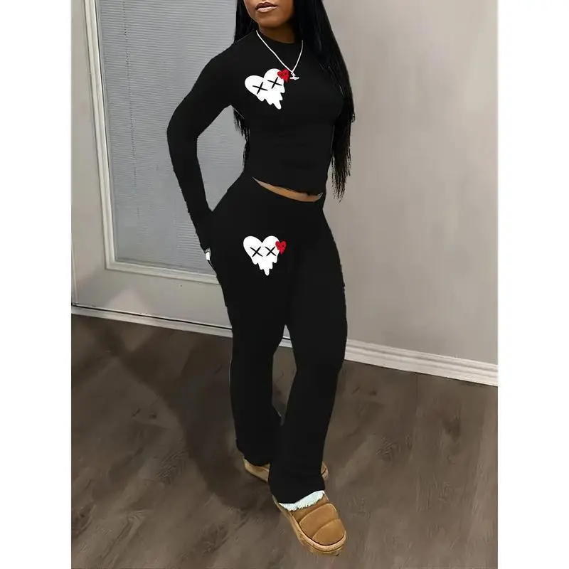 Comfortable Y2K Heart Print Set - Fashionable and Easy to Care