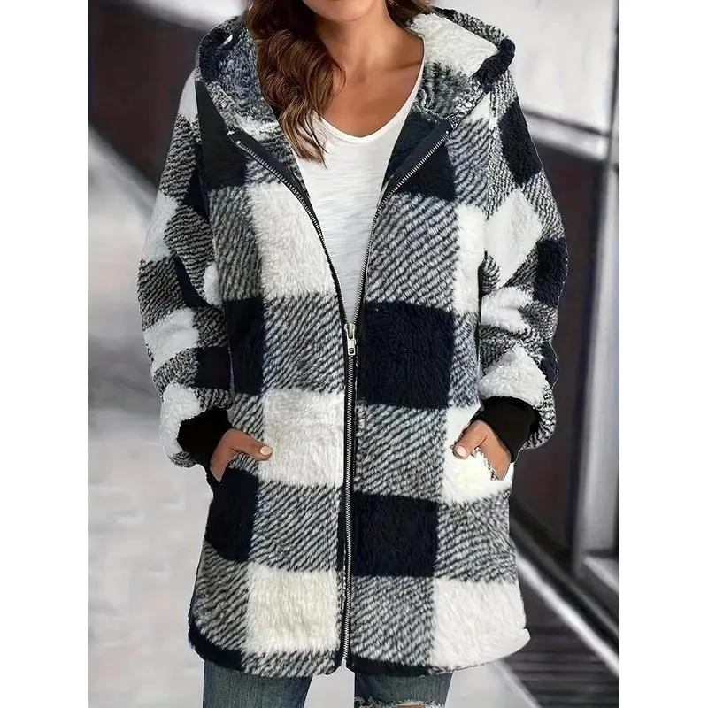 【Colorblock Design】: This outerwear features a vibrant colorblock pattern, adding a contemporary touch to your fall and winter wardrobe. 【Warm Fabric】: Crafted from thick knit fabric, this jacket provides excellent insulation against the chill of falling temperatures. 【Practical Pockets】: Equipped with convenient pockets, allowing you to carry essentials securely while on the move during the colder seasons. 【Loose Fit】: Designed with a relaxed, loose fit that ensures ease of movement, accommodating layers for added warmth. 【Hooded Style】: The attached hood offers extra protection from the elements, making this outerwear a functional choice for winter outings.
