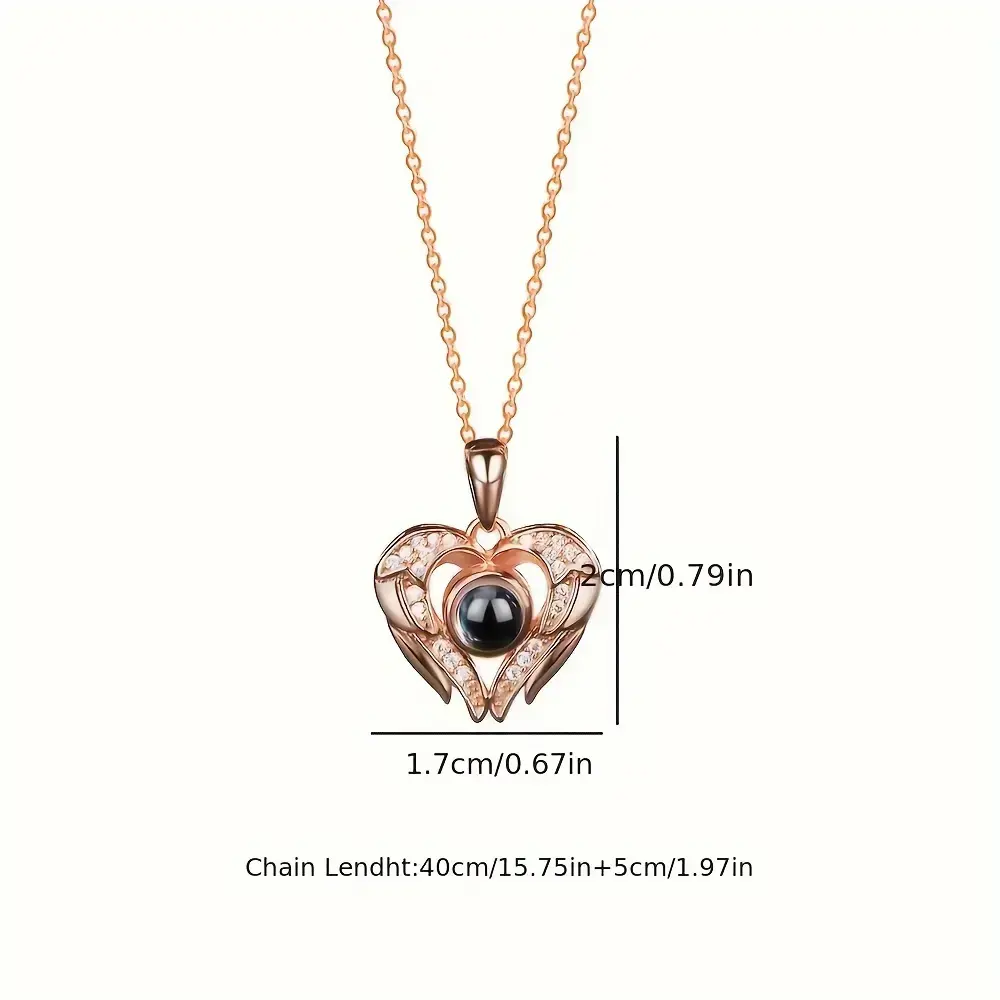 Customized Projection Necklace With Color Pictures, Elegant Style zirconia Decor Heart-shaped Wing Pendant Necklace For Mother's Day, Romantic Custom Accessory, Luxury Gifts For Women