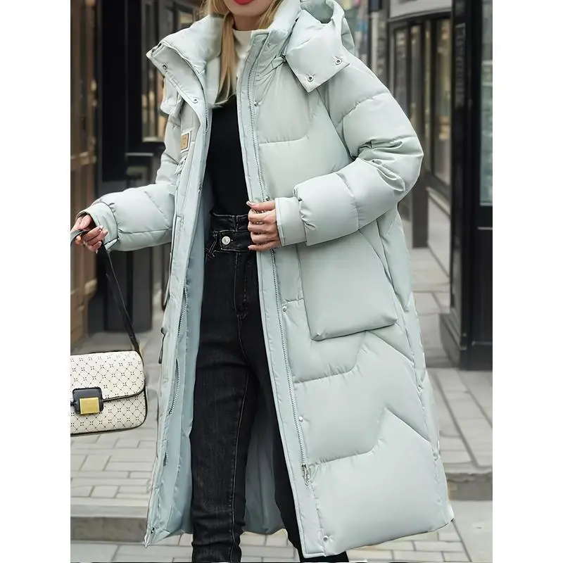 Women's Casual Long Hooded Jacket - Thick, Warm Puffer Coat with Pockets Fall/Winter, Machine Washable Collar Womenswear Tops Outerwear Black