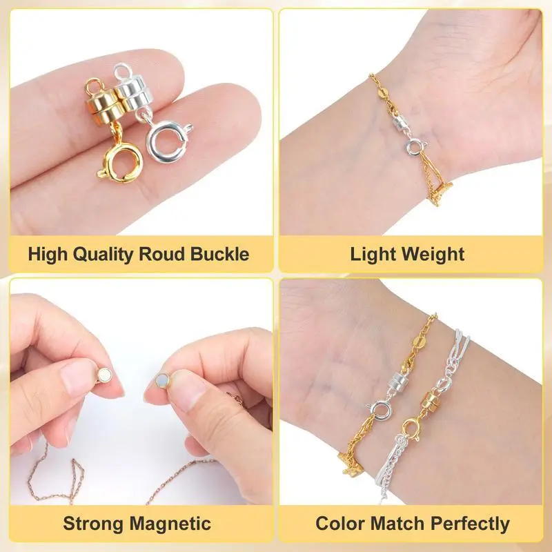 Package Includes: Necklace shortener clasp is 0.7 inches long and 0.2 inches wide. Package includes 6 pcscolored necklace clasps and 6 pcscolored necklace clasps Magnetic Necklace Clasp Converter: Eachchain clasp contains 2 magnetic parts, but is lightweight, only about 0.03 ounces, which can help you easily match youraccessories for any occasion Easy To Use: Magnetic necklace clasps and closures are easy to put on and take off in just a second. Ideal for people with long nails, arthritis, anduse of fingers Sturdy Material: The magnetic bracelet clasp is made of brass, which is sturdy and not easy to fall off, and not easy to be deformed after a long time of use Wide Application: Magnetic necklace clasp design is fashionable and simple, suitable for DIYmaking projects, it can help you extend the length of necklace bracelet anklet, and so on