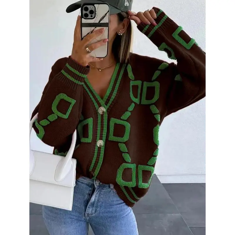 Women's Colorblock Contrast Binding Button Front Cardigan, Casual Wear Drop Shoulder Long Sleeve V Neck Cardigan Sweater for Spring & Fall, Fall Sweaters Knitwear for Women, Ladies Knitwear for Daily Casual Wear, Clothes for Women, Knitting Womenswear