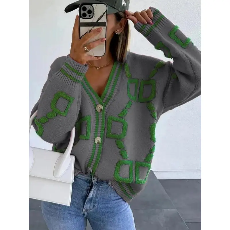 [V Neck Opening]: Features a classic V neck silhouette that adds a sophisticated touch while ensuring ease of wear for various occasions. [Colorblock Pattern]: Showcases a high contrast colorblock pattern that creates a bold visual appeal, setting it apart from traditional cardigans. [Drop Shoulder]: The drop shoulder sleeve type allows for enhanced freedom of movement, providing a relaxed fit that complements daily activities. [Easy Maintenance]: This cardigan is machine washable, making it low-maintenance and a practical choice for everyday use. [Detailing Elements]: Incorporates contrast binding along the button front, adding a unique finishing touch that enhances its visual interest.