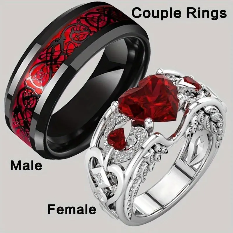 Stunning Heart-Shaped Couples Rings - Stainless Steel Engagement Rings for Women and Men - Durable, Hypoallergenic, and Comfortable Wedding Bands with Romantic Heart Design - For Couples - Perfect for Engagement, Wedding, Anniversary - Idea