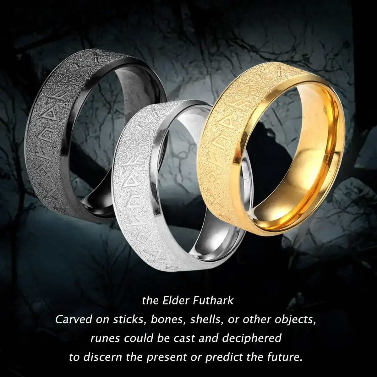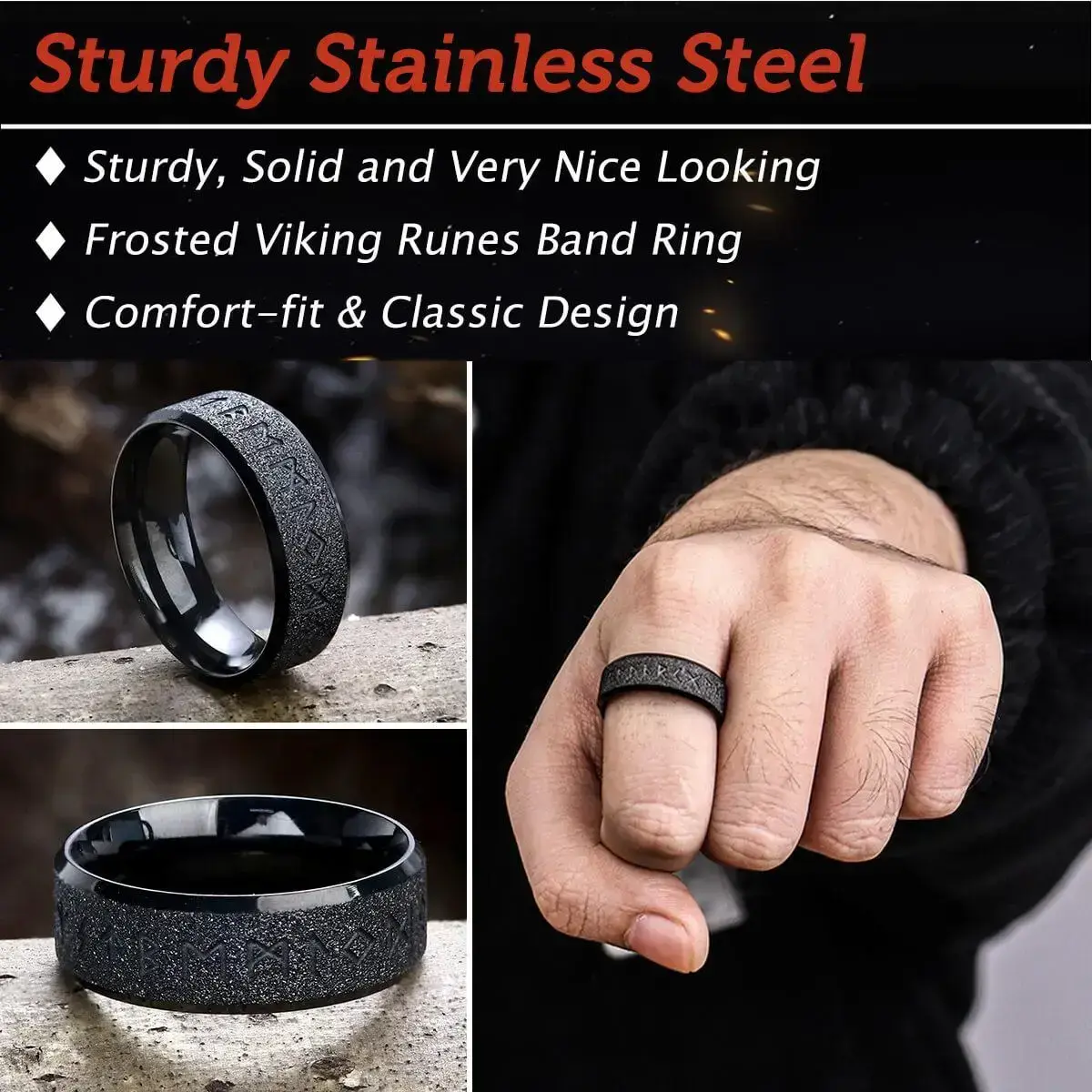 Viking Rune Ring - Nordic Matte Stainless Steel Men's and Women's Jewelry, Birthday and Mother's Day Gifts