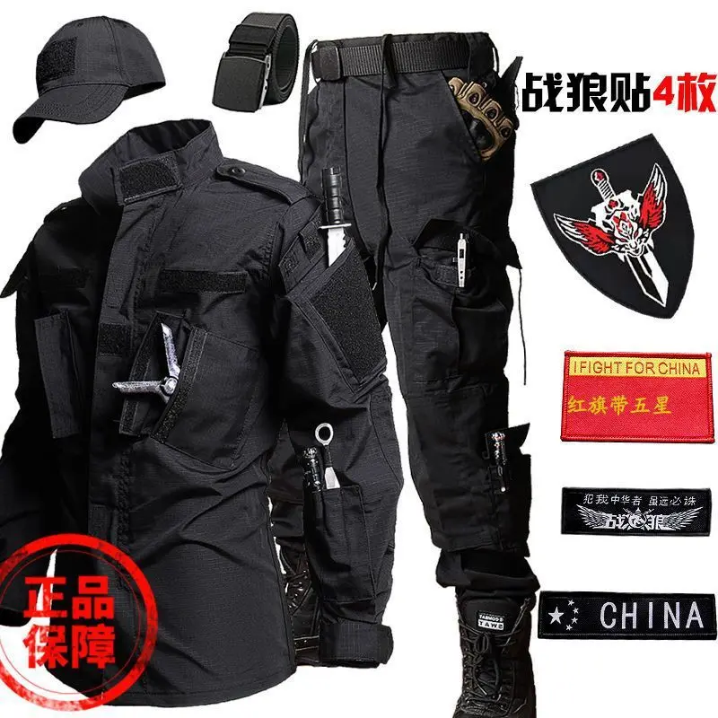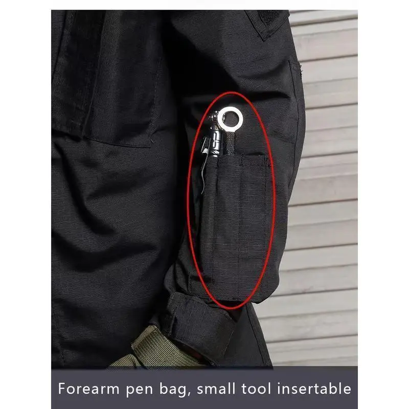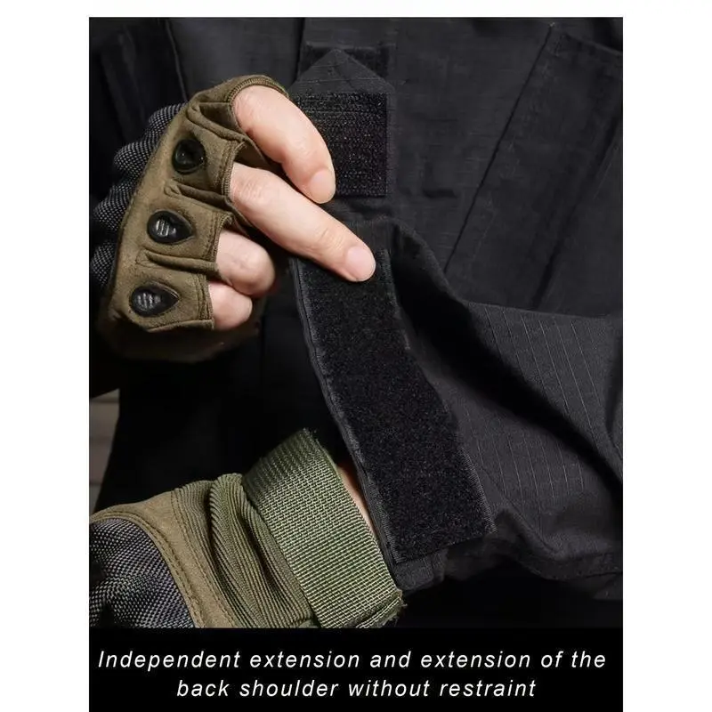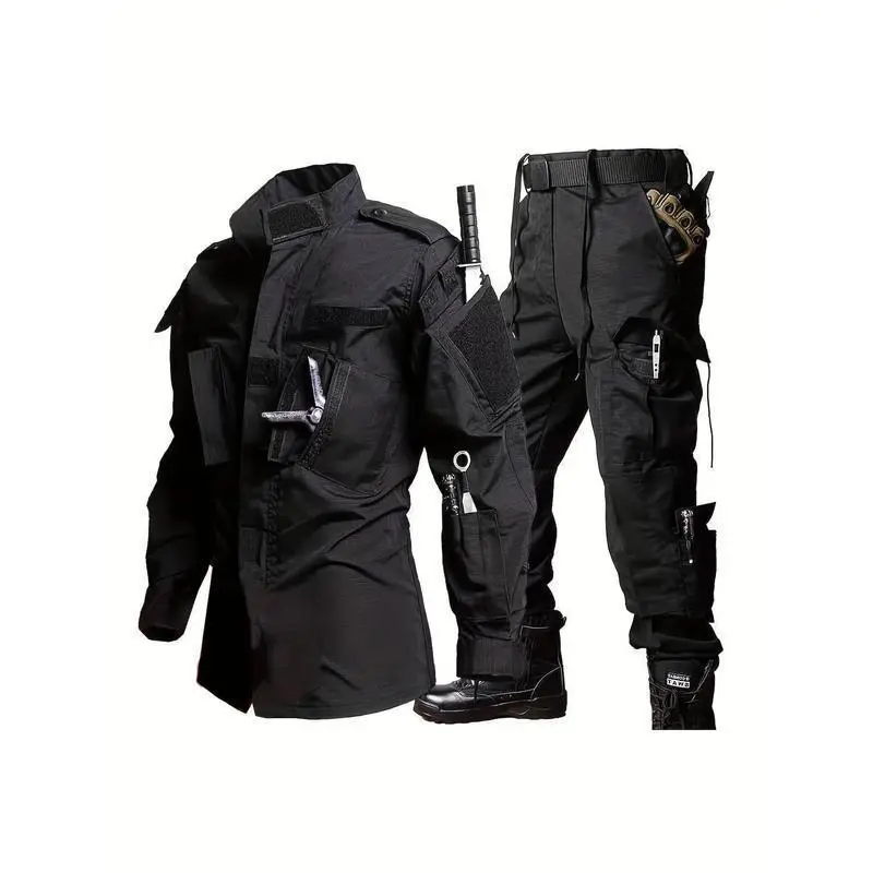 Men's Lightweight Tactical ACU Suit - Black, Durable Polyester Outdoor Camouflage Hunting & Training Gear with Multiple Pockets, Long-Sleeve Jacket & Cargo Pants for Hiking & Combat, Hiking Outfit | Rugged Outdoor Wear | Durable Fabric