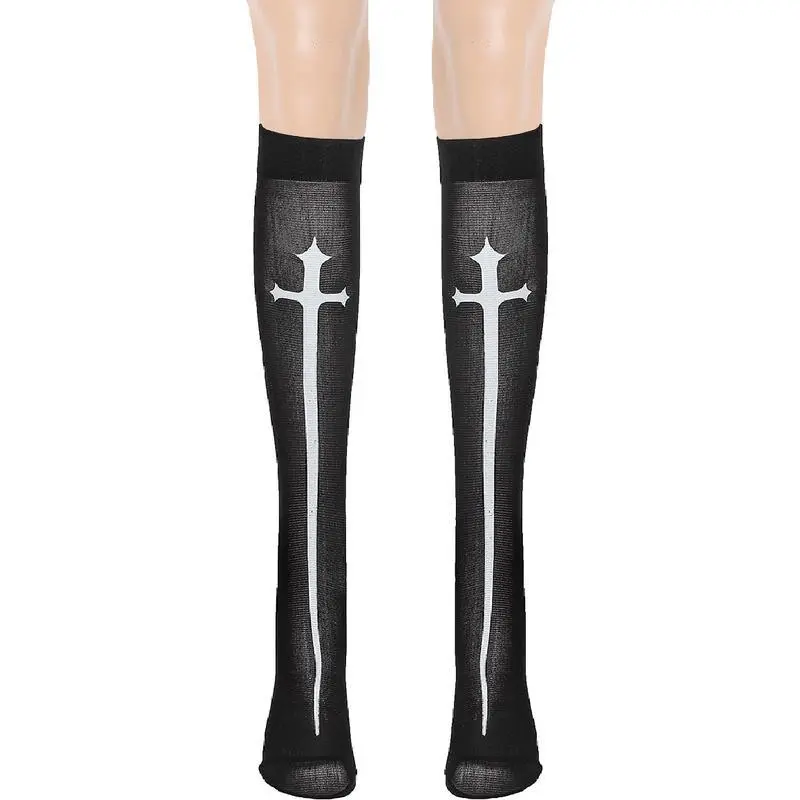 Maria nun costume cosplay halloween nun cos costume cross Skeleton Onesie Set Halloween Pajama Set with Lettuce Trim Short Sleeve Compression Turtleneck Shirt Hollowed-Out Women's Fishing Grid Set athletic style activewear