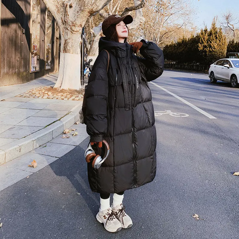 New Thickened Down Cotton Jacket for Women Long Over-the-Knee Cotton Coat Korean Style Loose Puffer Jacket Winter Cotton Padded Outerwear Tops Womenswear White Basic Casual Minimalist -- cute tops single-breasted design cartoon la perla nightwear
