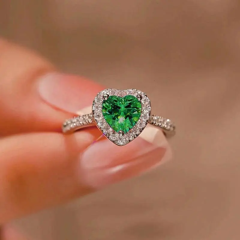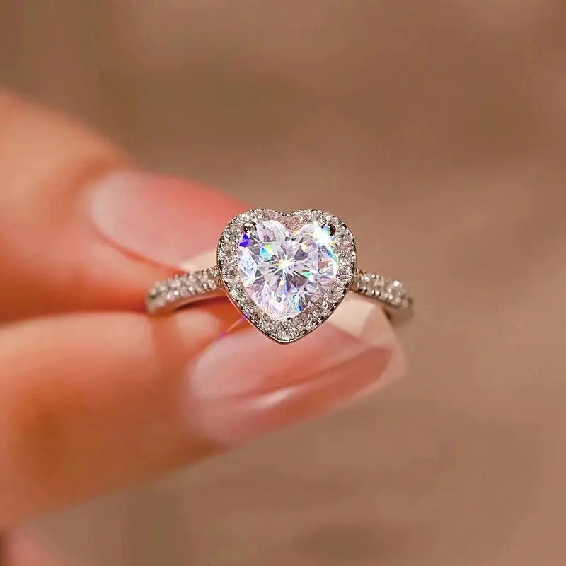925 Silver Plate Pink Heart Shaped Cz Romantic Simple & Elegant Wedding Ring for Women