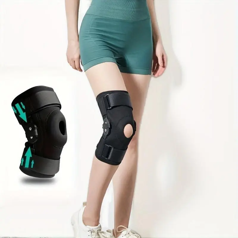 HingedKneeBrace-DoubleadjustableX-Strapstraps,RemovableMetalHinges&Built-inSideStabilizers&KneeJointPatellaFixation-StrongStabilityforUse