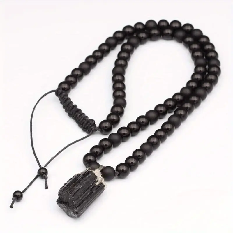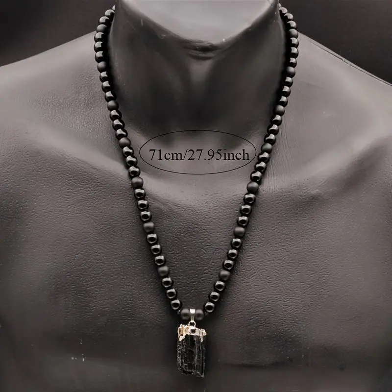 Original Tourmaline Pendant Natural Black Onyx Gemstone Protective Stone Necklace Black Men's Necklace Gift for Him Unisex Necklace