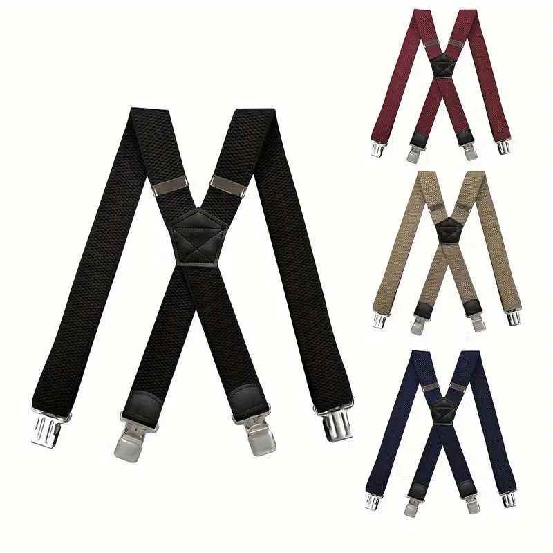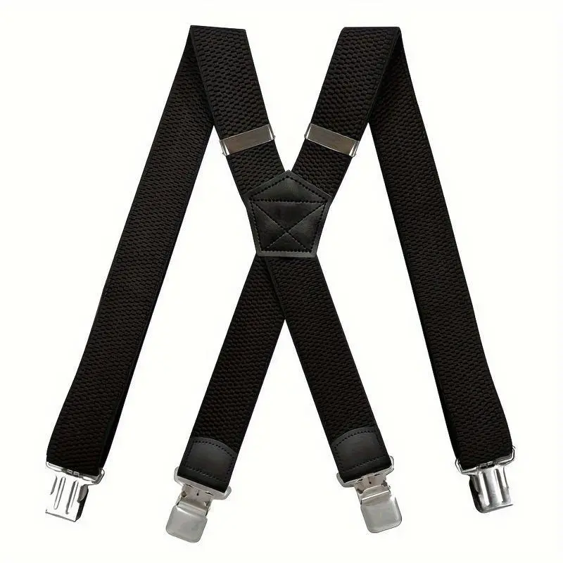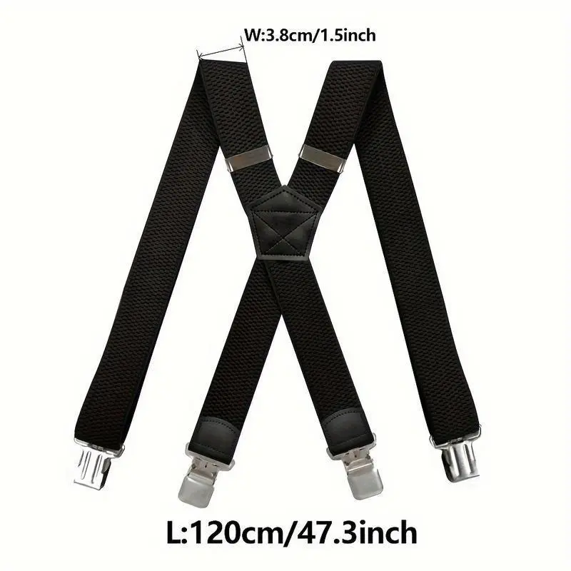 1/2pc Heavy Duty Suspenders For Men Work Outdoor Hunting Motorbiking Skiing, 1.5inch Wide X-back 4 Strong clamp, Adjustable Elastic Men's Suspenders Trouser Braces