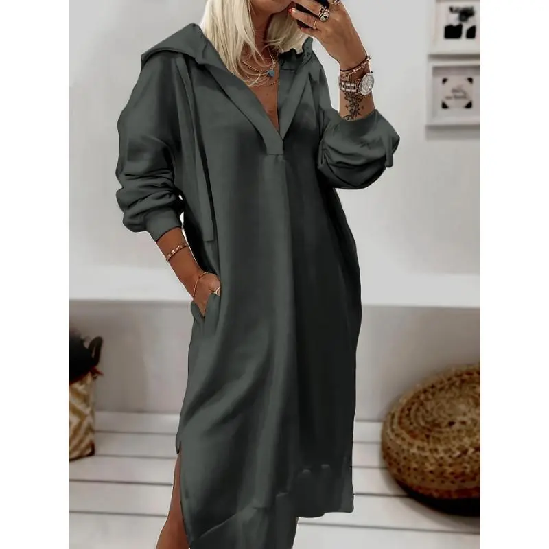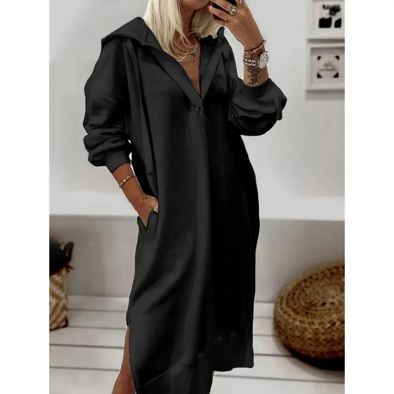 🌟 Oversized Sweatshirt Dress 🌟 Elevate your wardrobe with this Soft Oversized Women's Hooded Dress. Crafted from 95% Polyester and 5% Elastane, it offers micro elasticity for comfort. The dress features a V-neck, long sleeves, and side slit hem, perfect for all-season wear. It includes pockets for practicality. Machine washable, it's ideal for everyday outfits. Trendy and casual, it's a must-have for streetwear enthusiasts. Product Details 📝 Care Instructions 🧺 Machine wash for easy care. Do not dry clean. This versatile dress is perfect for any occasion, offering all-season comfort and style.