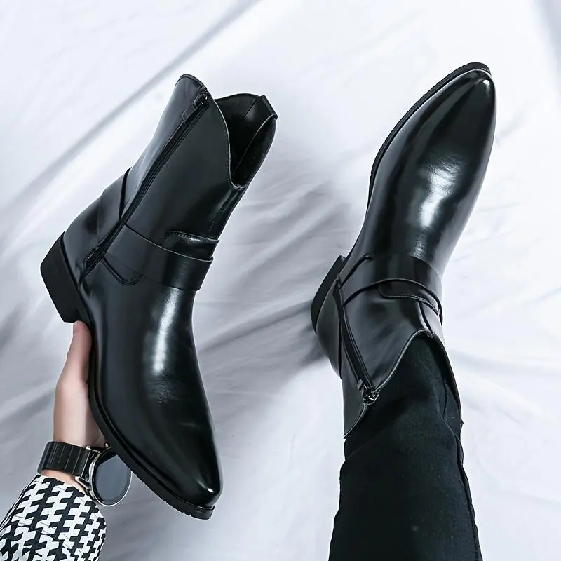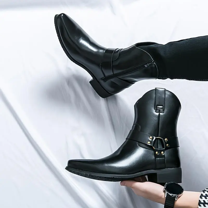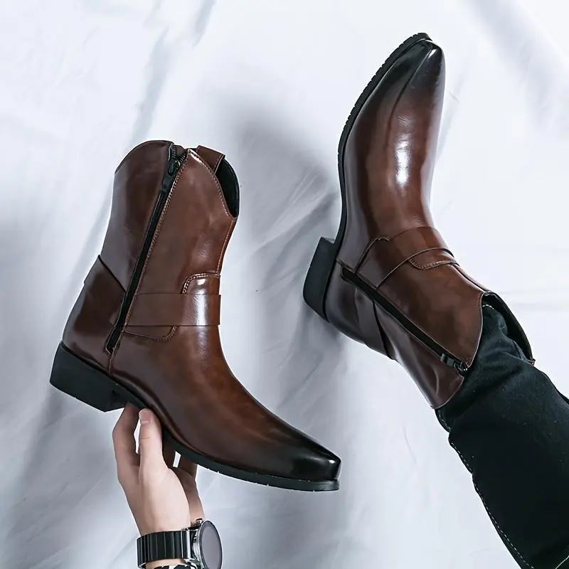 Men'S Vintage Style Western Cowboy Boots - PU All-Season Slip-On Chukka with Pointed Toe for Equestrian Sports, Rock, Denim Fashion - Retro Solid Short Boots with Rubber Sole for Casual, Outdoor Camping & Vacation Fathersdaygift Walking Shoes