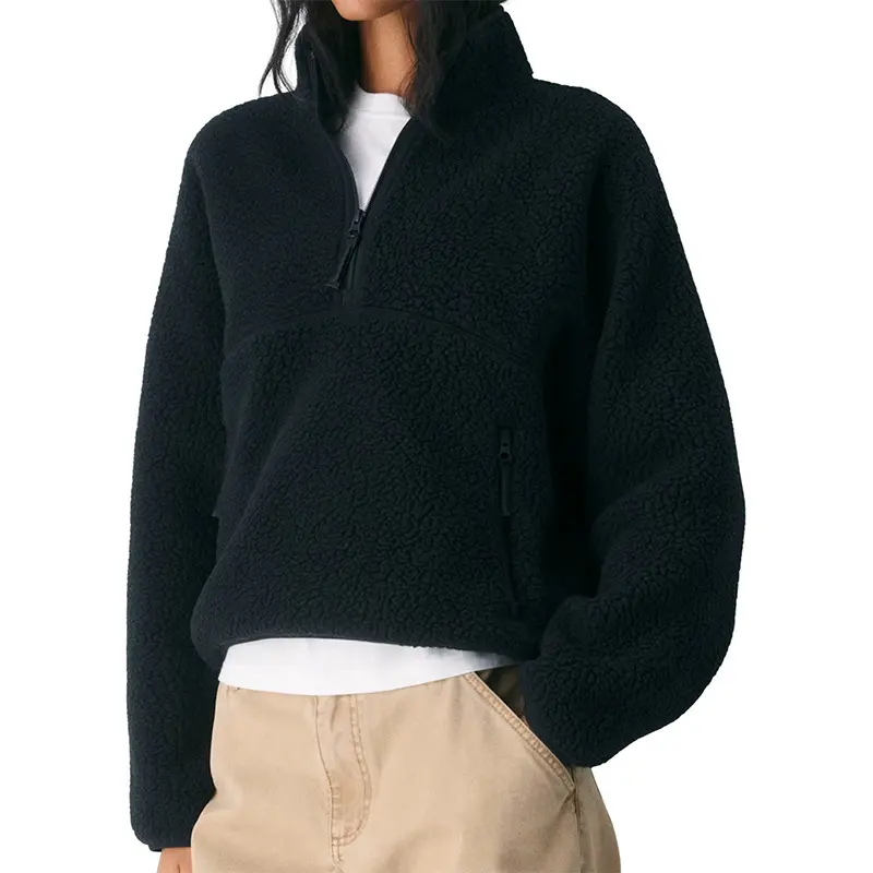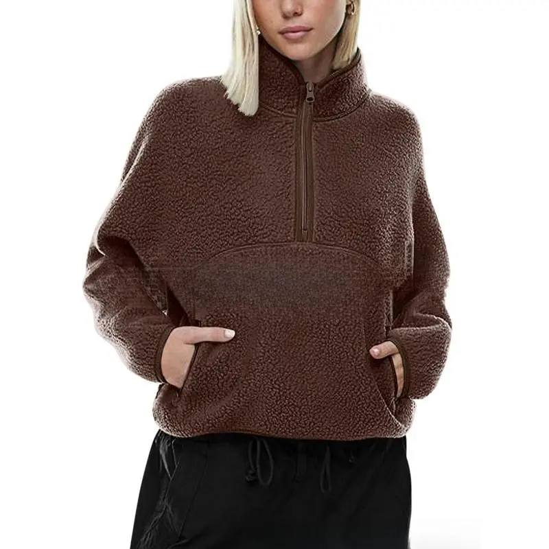 Feature: Womens sherpa fleece jacket designed with wind-blocking funnelneck, relaxed drop shoulders, side zipper pockets.It's the perfect throw-on-and-go layer that'll keep you warm and comfy Material: The trendy sweatshirt is made of polyester.The breathable thermal fleece with a shaggy sherpa texture for weightless warmth and long-lasting comfort Material: Crafted from polyester, this fashionable sweatshirt boasts breathable, insulating fleece fabric as soft and cozy as teddy bear fur. Long-pile fleece was specifically chosen to create a more form-fitting, drapey, and premium feel. Occasions: The fuzzy top is a perfect choice for any occasion, home, office, party, school, running, sports, gym, yoga, skating, hiking, biking, spring, fall and winter, accentuating your wonderful figure.With this sweatshirt, your fashion and warm outfit is almost complete Easy Care: Machine wash cold or hand wash. Do not bleach Some buyers have mentioned that the fit runs slightly small. If you prefer a looser fit, consider ordering one size up.