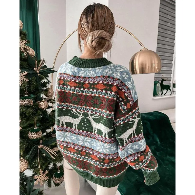 Christmas shirt women 2025 Christmas sweater round neck loose five-color Christmas sweater long sleeve women's sweater 2025 Christmas gift knitted top