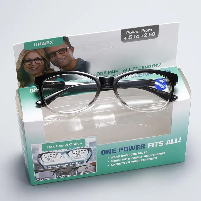 Adjustable Focus Oval Full Frame Glasses, +0.5 to +2.5 Strength, Flexible Optical, Unisex Smart Zoom Casual Glasses, Multi-focus Glasses, Automatic, Frame Black Transparent