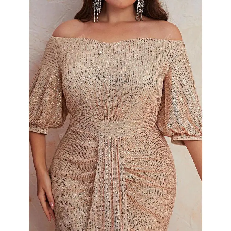 Women's Plus Size Off Shoulder Ruched Sequin Formal Dress Elegant Prom Evening Wedding Guest Gown For Graduation Dinner Womenswear Workwear