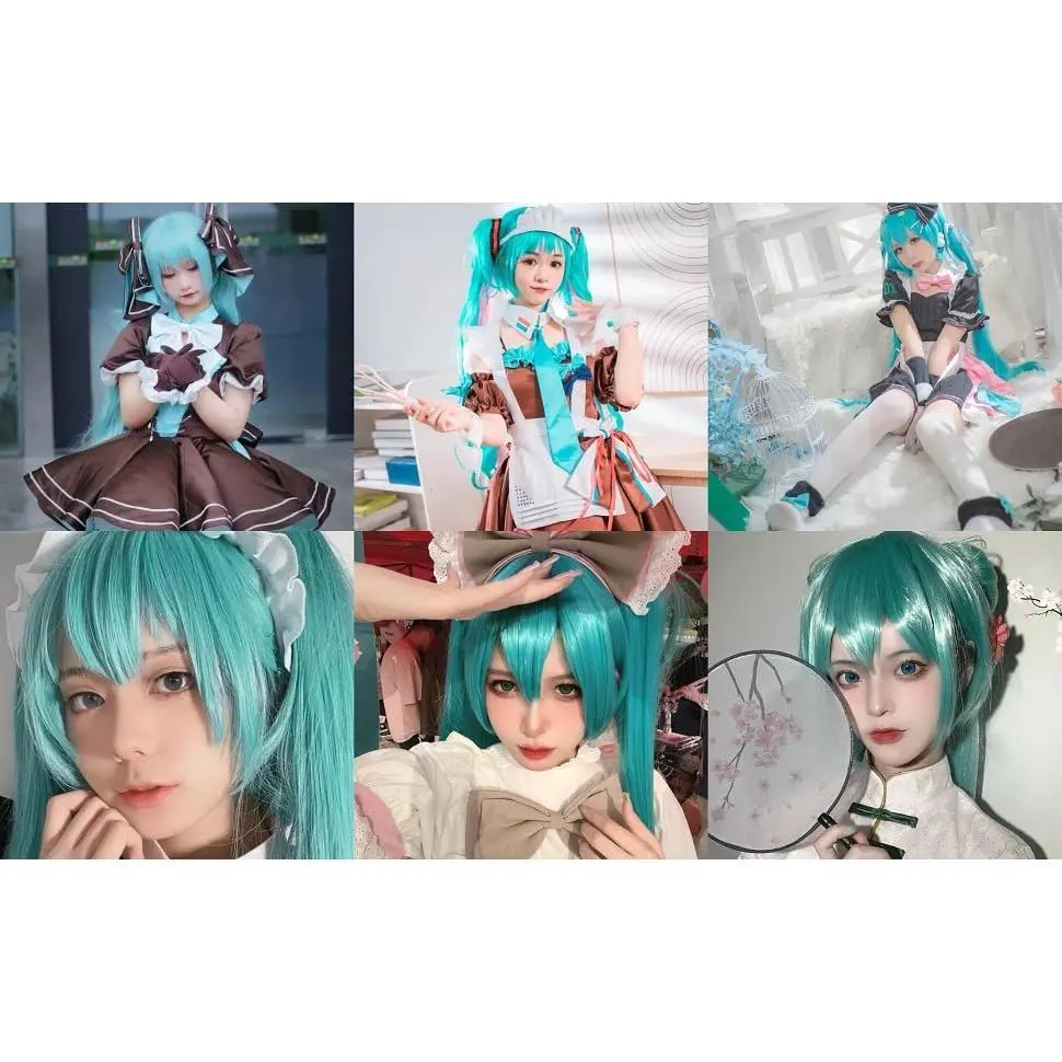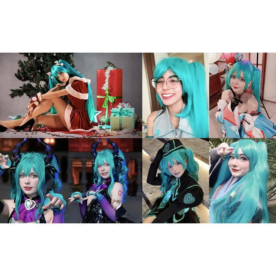 Synthetic Green Wig Cosplay Green Teal wig Double Ponytail Wig Long Green Wig With Bangs Straight wig Kawaii Wig Miku Wig