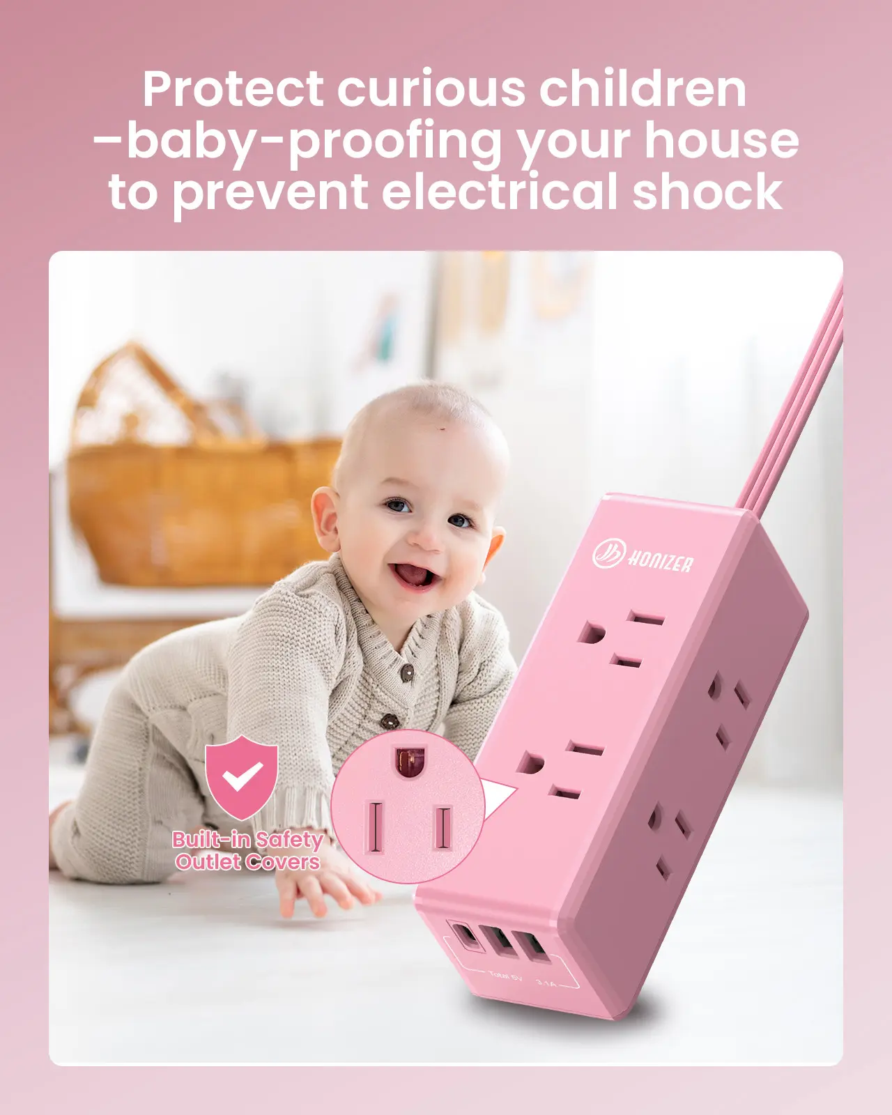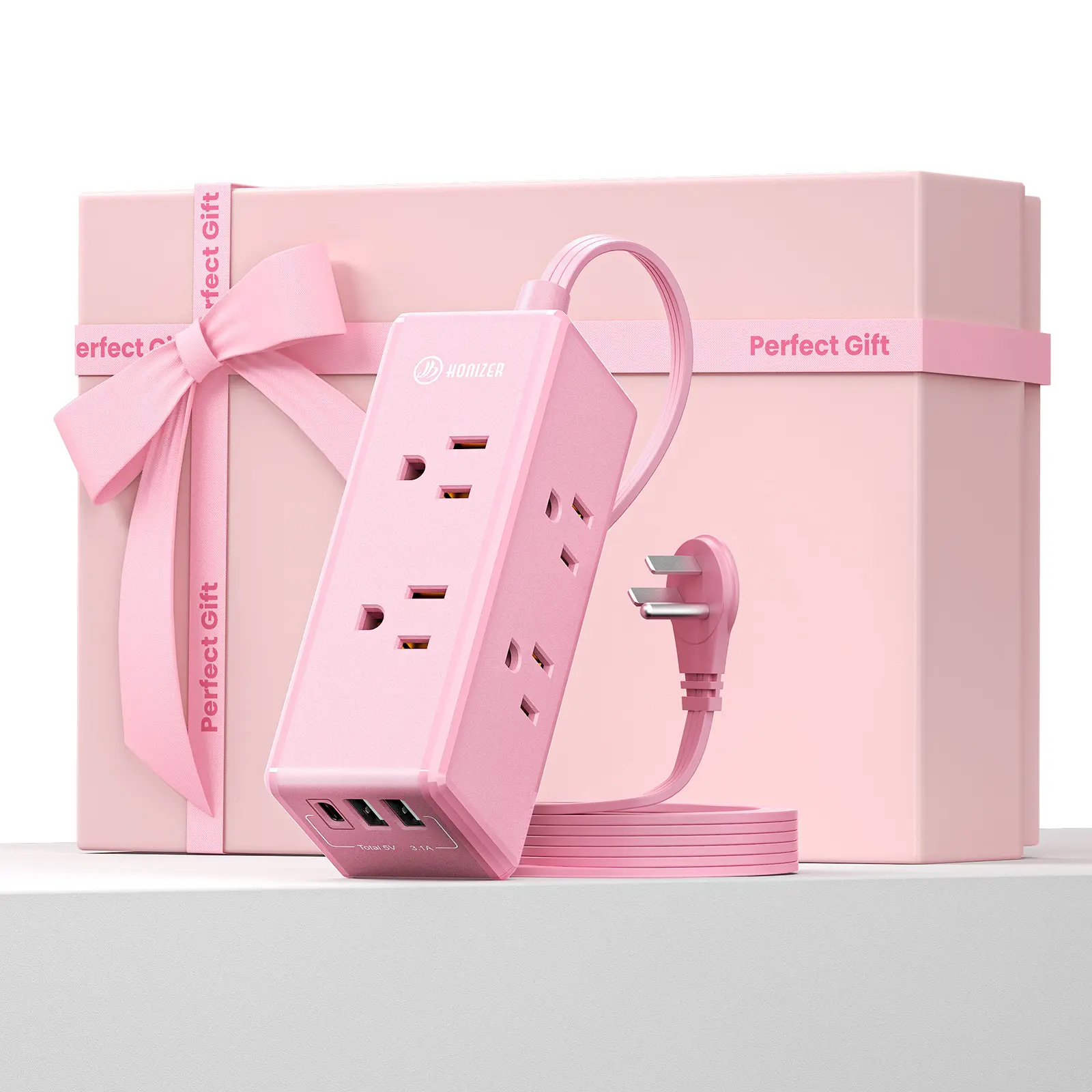 ·Chic Light Pink Power Strip & Thoughtful Gift-Ready Ideal:Upgrade your space with the Honizer pink power strip’s Instagram-worthy light pink hue! Designed for aesthetic-conscious users, it blends seamlessly into nurseries, pink-themed desks, or bedrooms. Its giftable Pink Design makes it perfect for birthdays, housewarmings, or girl’s college move-in days—ideal for those obsessed with pink office vibes and cute power strips.