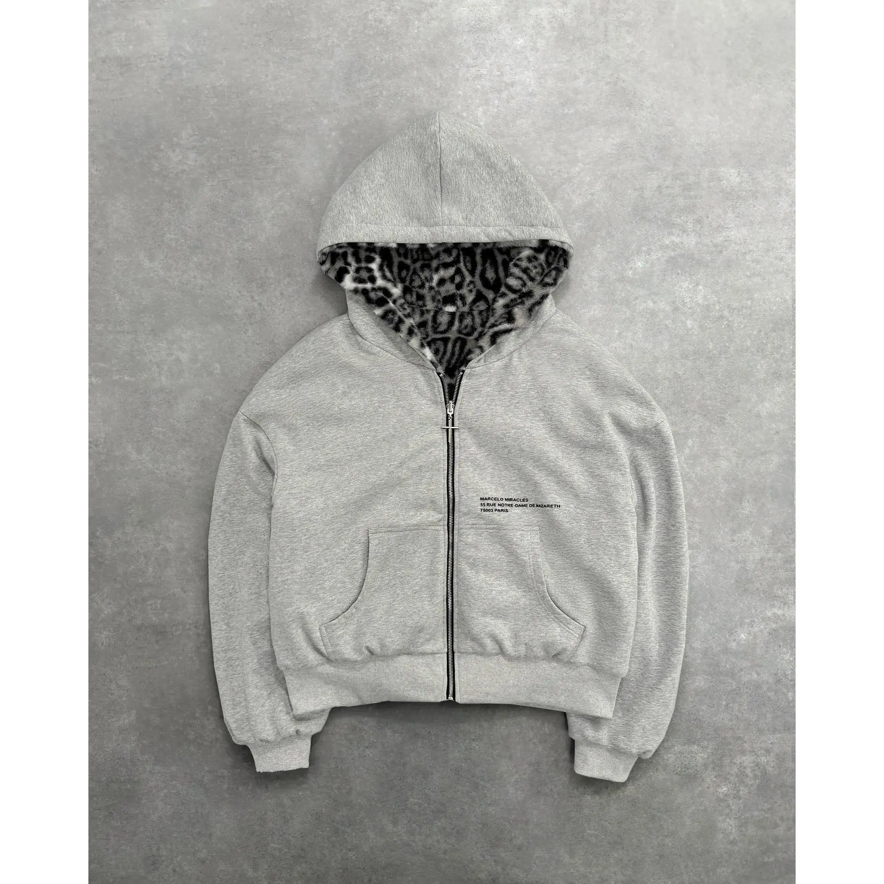 2025 New Autumn and Winter New Product Hooded Sweatshirt Reversible retro Leopard Print Zipper Hoodie loose Top