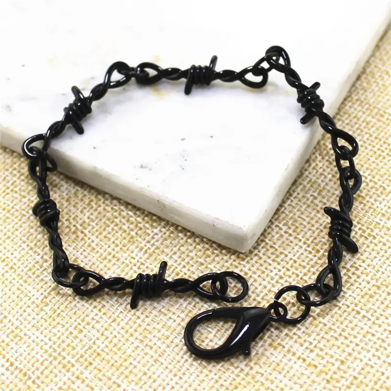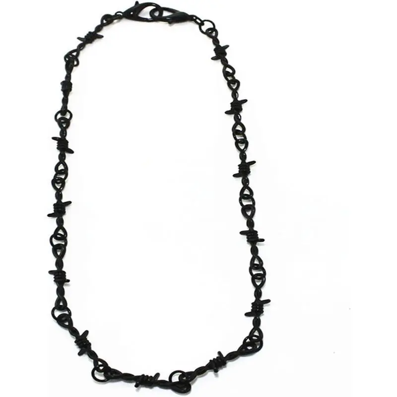 Punk Barbed Wire Thorns Chunky Brambles Metal Link Chain Adjustable Necklace Safety Spur Duty Padlock Flame Cool Hiphop Rock Choker Jewelry for Women Men