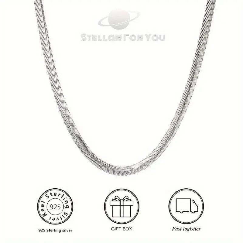 S925 Sterling Silvery Flat Snake Bone Chain, Handmade In Italy, Sterling Silvery Allergy Proof, Artistic Necklace, Can Be Worn Alone, Overlap And Mix And Other Multiple Wear Styles, Unisex, Jewelry Gifts fashionable matching bracelets dainty gold nurse