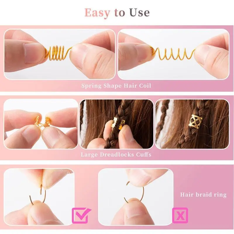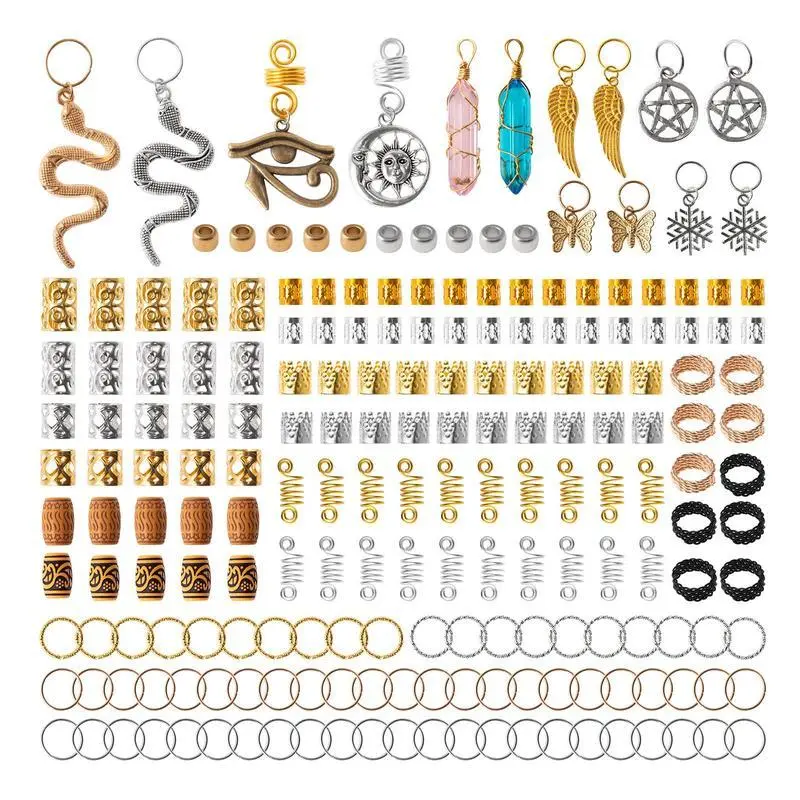 200pcsHairBeadsJewelry,DreadlocksGemCrystalCharms,MetalCoilsRings,GoldAndSilverPendants,BraidCuffs,Clips,LocTubeBeadBraidAccessoriesforBraidsDecoration