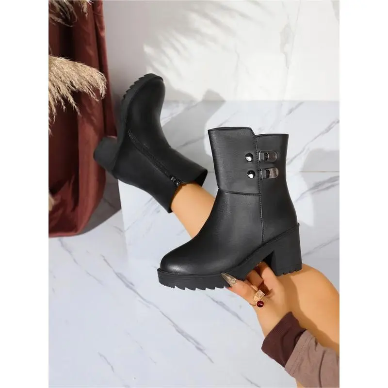 Women's autumn and winter fashion plush short boots; thick-soled high water platform waterproof upper leisure outdoor boots; lightweight comfortable soft sole anti-skid wear-resistant high-throughput commuting boots for women Round Toe Boot