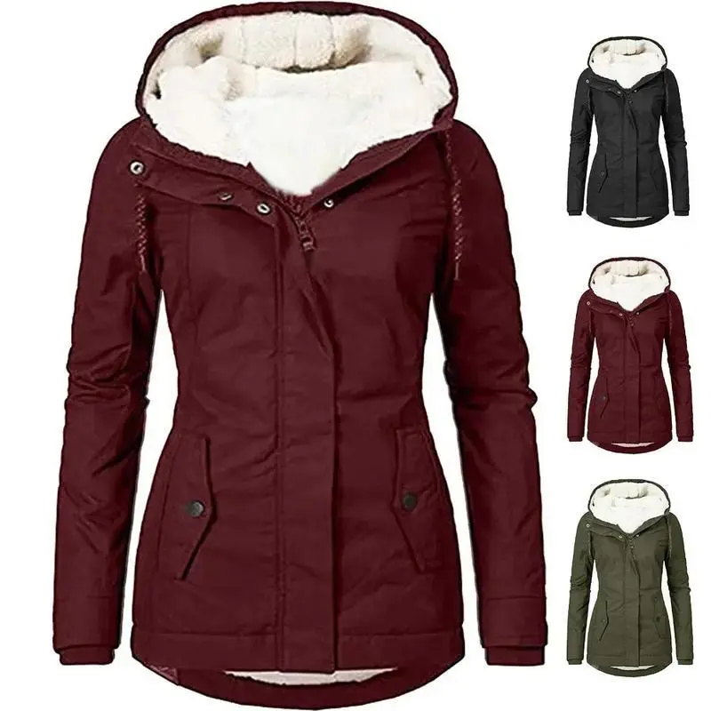 2025HoodedWomenSpliceZipperCoatsLooseCasualPocketsParkasRegularThickFullSleeveWarmSolidJacketsAutumnWintercamouflagedesignplushsweatshirtwinterclothes