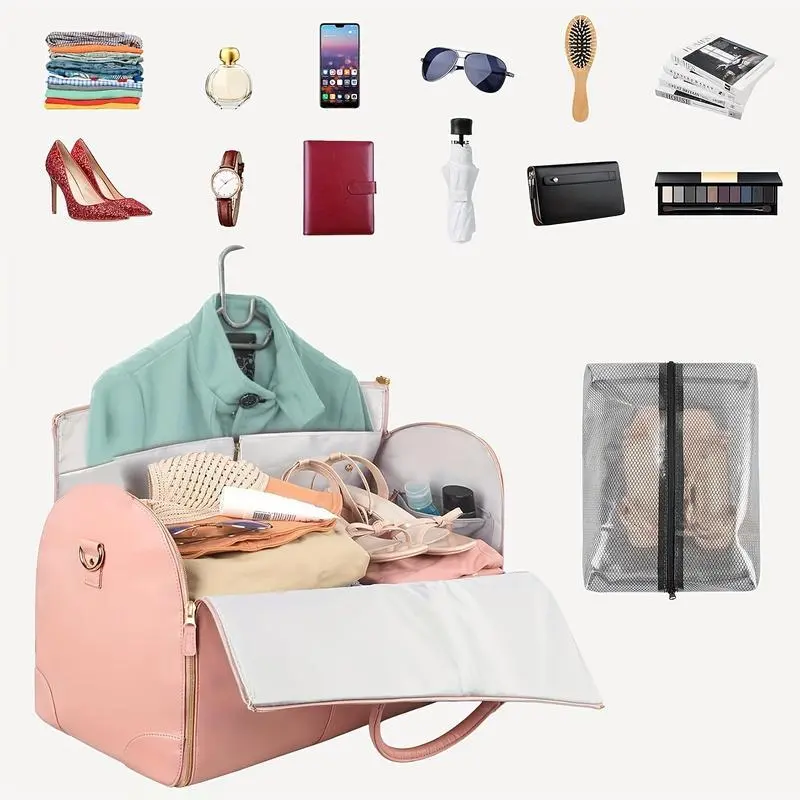 [2-in-1 Foldable Travel Bag] 2-in-1 Foldable Clothing Travel Bag, Carry-on Duffel Bag-Multifunctional Storage Bag Large Capacity Large PU Portable Luggage Bag