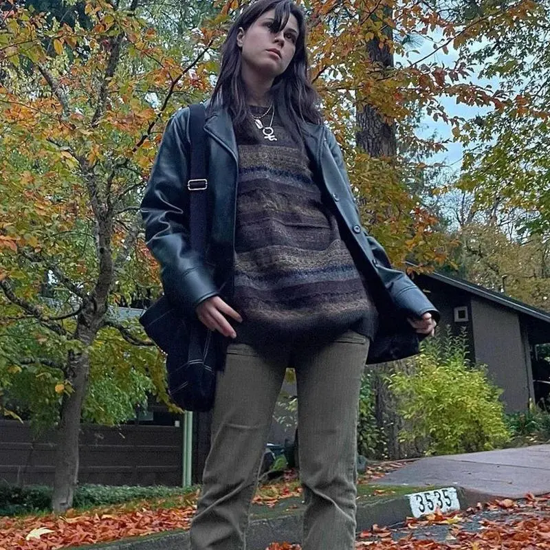 Preppy Grunge Retro Striped Knitted Sweater Autumn O Neck Full Sleeve Jumpers Fairycore Vintage Y2K Aesthetics Grandpa Sweaters