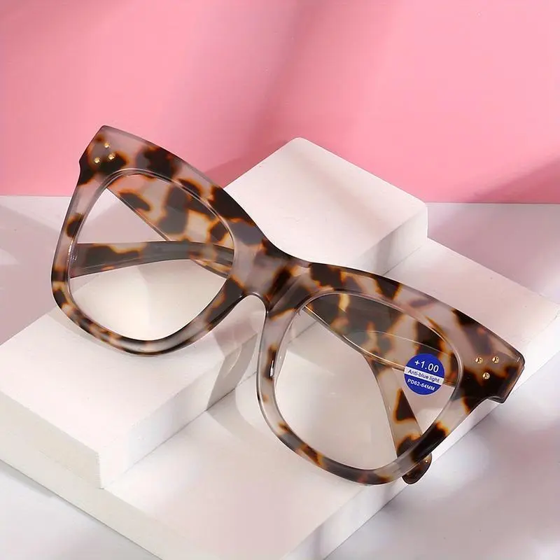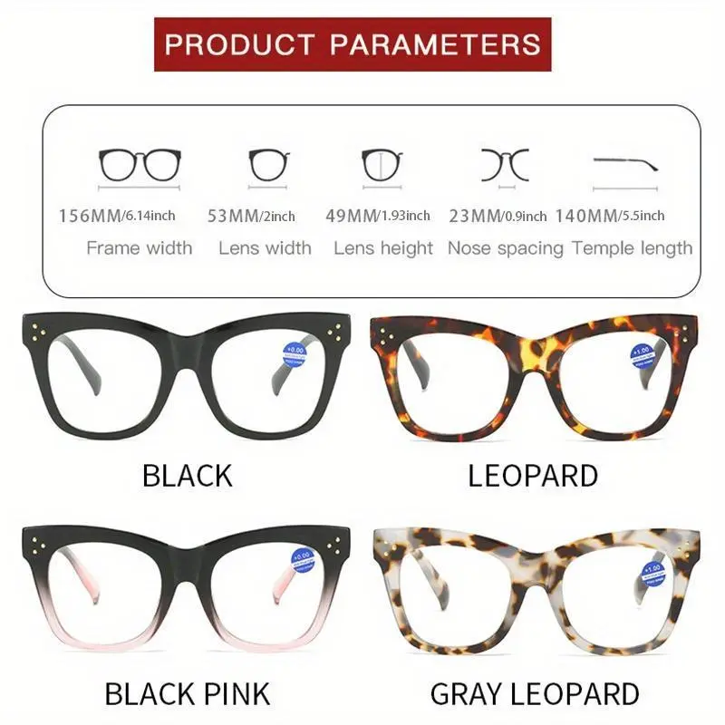 4 Pack Oversized Reading Glasses Frame with Strength Women Big Glasses Men Reader Glasses Eyewear Reading Leopard Print +1.0 to +4.0