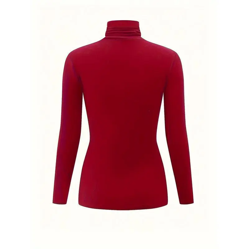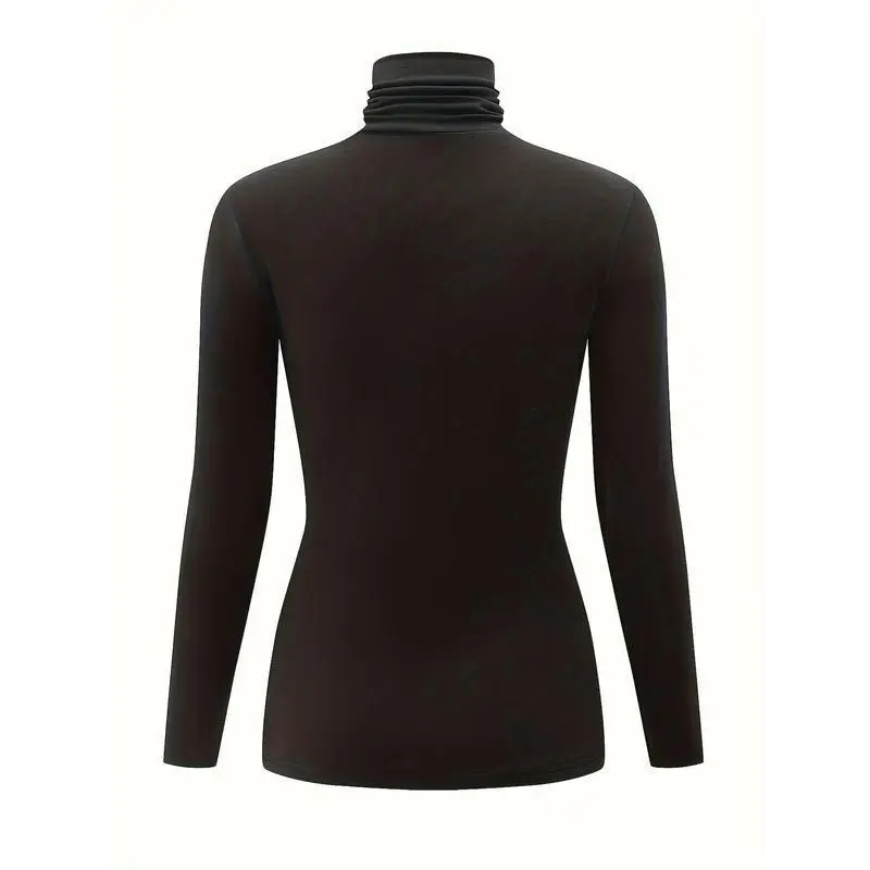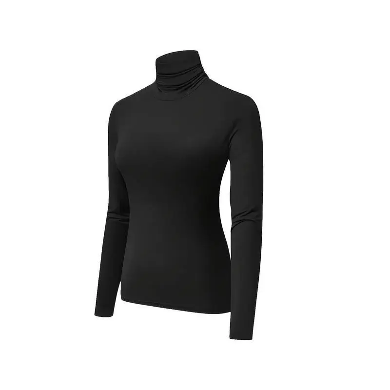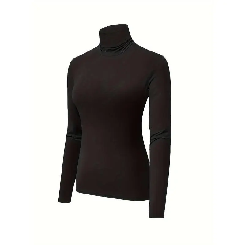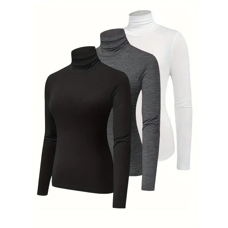 3 Pack Plus Size Simple Thermal Underwear Top Set, Women's Plus Solid Long Sleeve Turtleneck Soft Base Layer Top 3pcs Set Knit