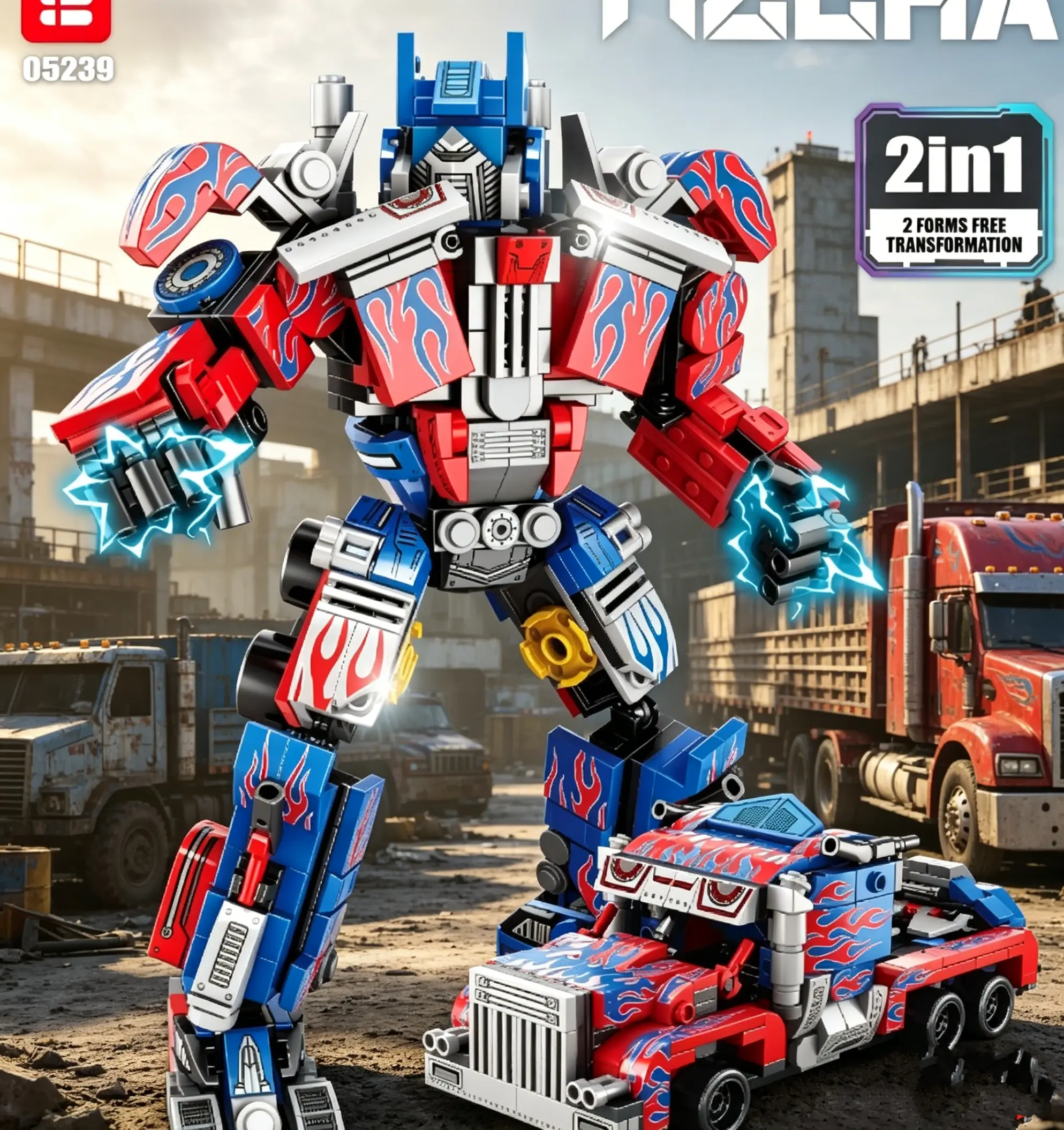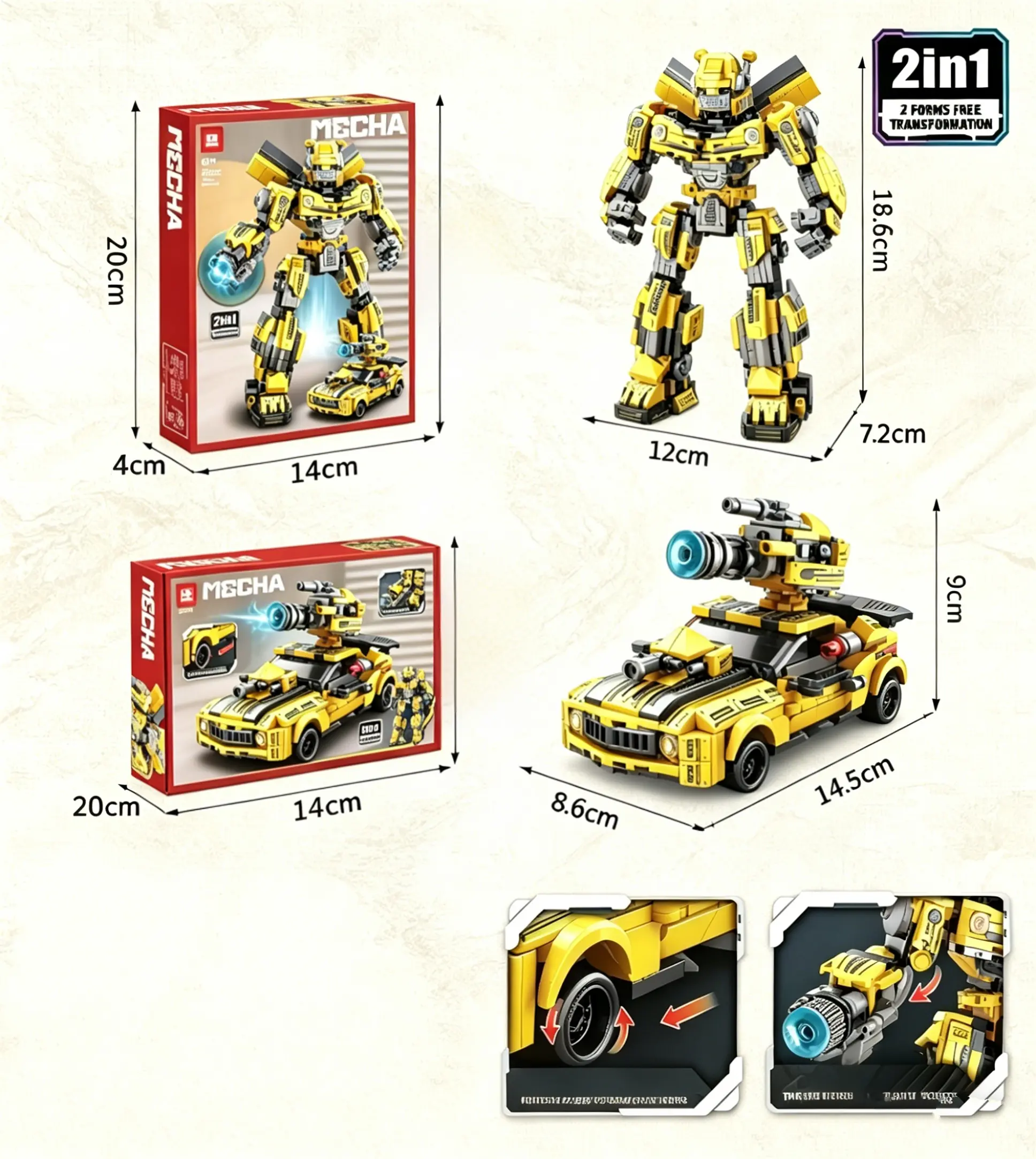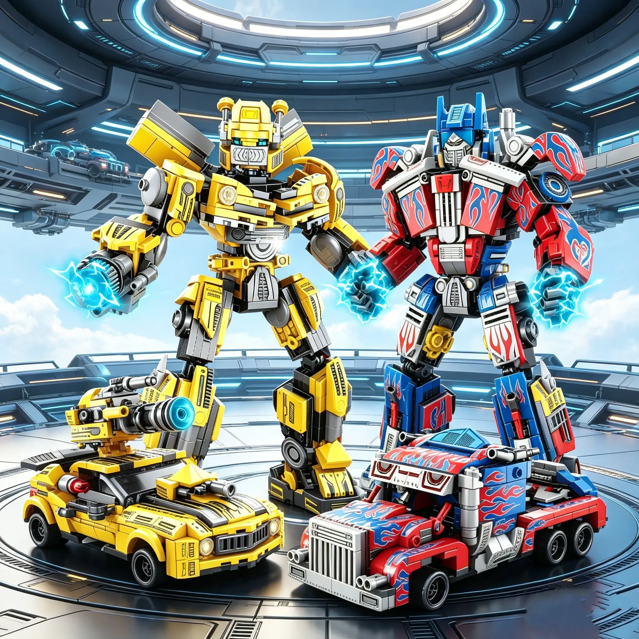 Transforming Robot Block Model, 2 in 1 Car Robot Display Set, Creative Desk Decor for Home and Office
