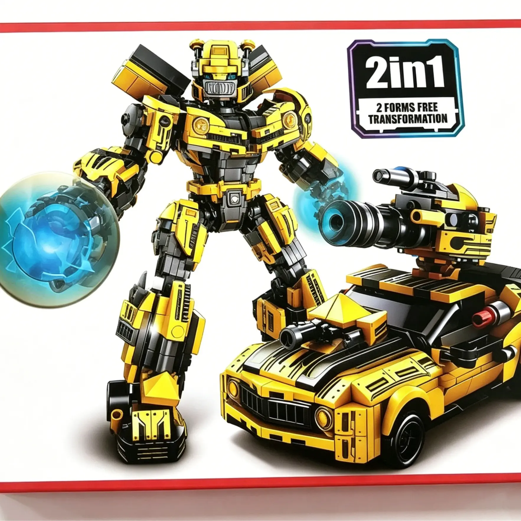 2 in 1 Transforming Robot Building Blocks, Car to Robot Display Model Kit, Creative Desk Decor Collectible for Home