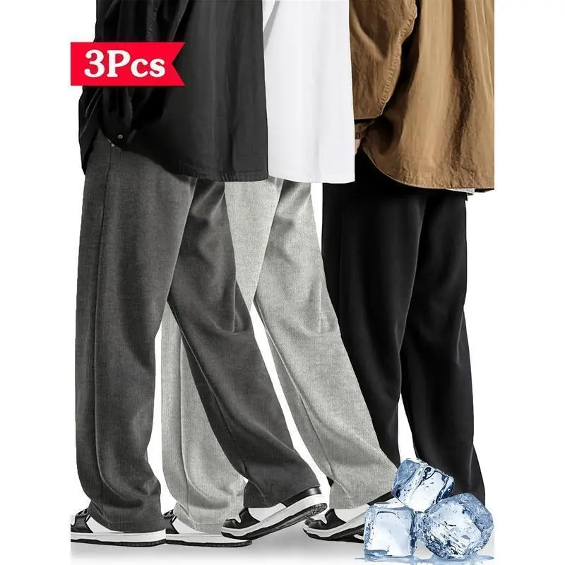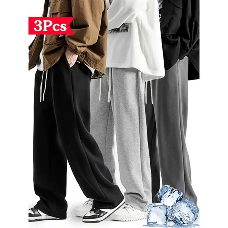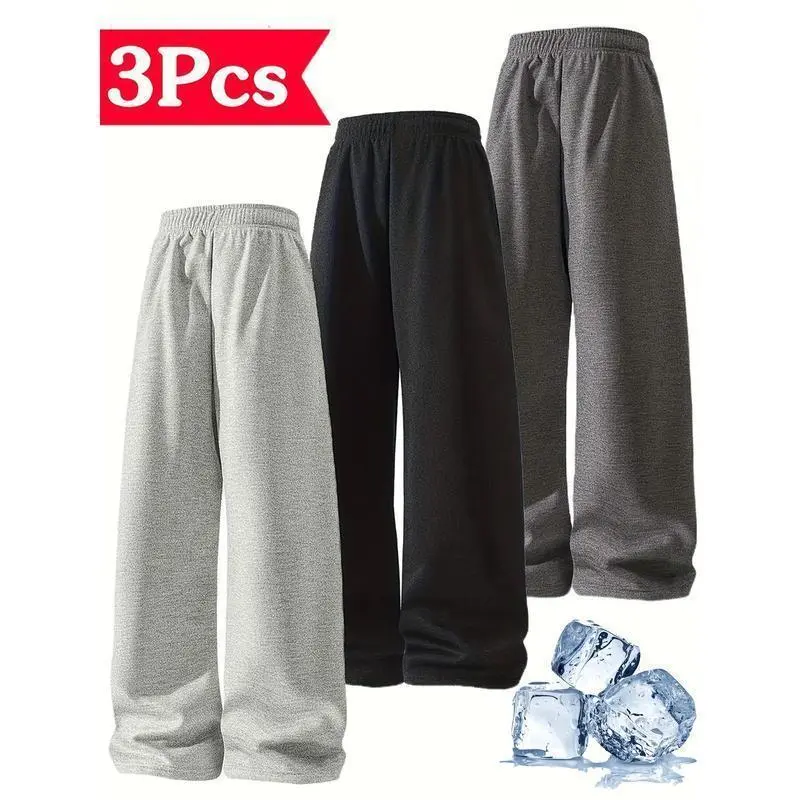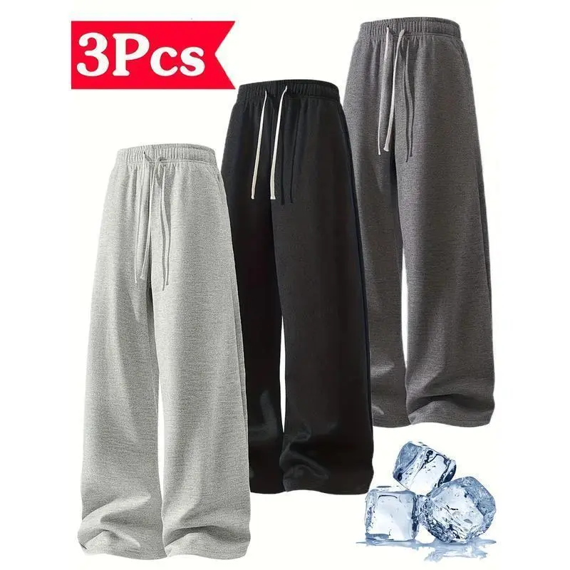 Men's Solid Color Joggers - Loose Fit Wide-Leg Sweatpants with Drawstring Waist and Cuffed Hem | All-Season Casual Pants with Elastic Waistband and Straight-Leg Design | Multiple colors available Fitness, casua