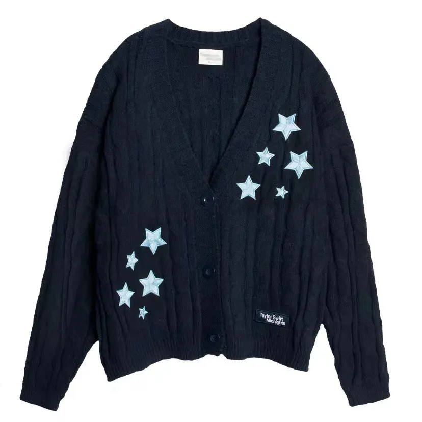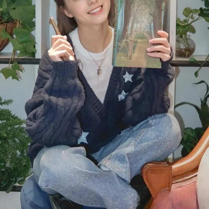 Winter Midnight Navy Blue Knitted Cardigans Women Spring Y2k Casual Star Embroidery Single Breasted XS-5XL Sweaters Dropshiping