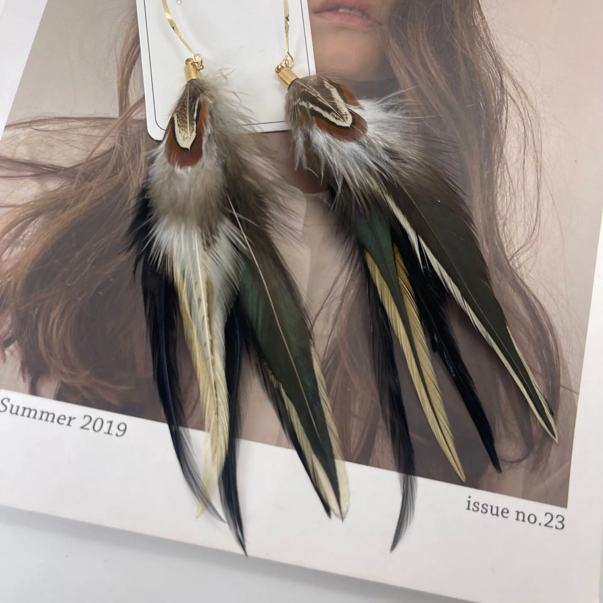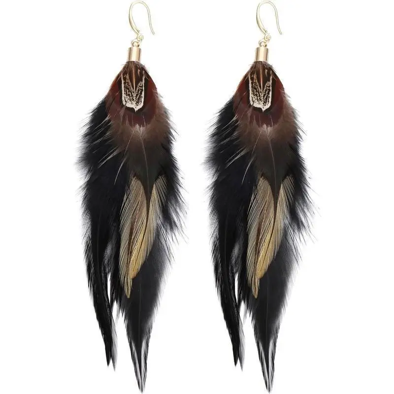 Bohemian Style Multicolor Pheasant Feathers Dangle Earrings Large Feather Drop Earrings(er006405)