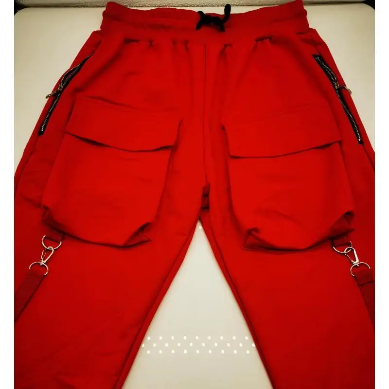 Mens Running Stretch Tights Sweatpants Sports Breathable Fitness Hip Hop Cotton Multi Pocket Cargo Pants Slim Leggings Chain Menswear Trouser