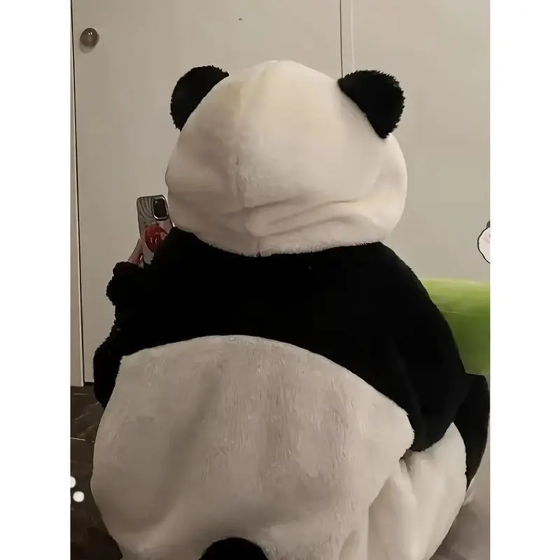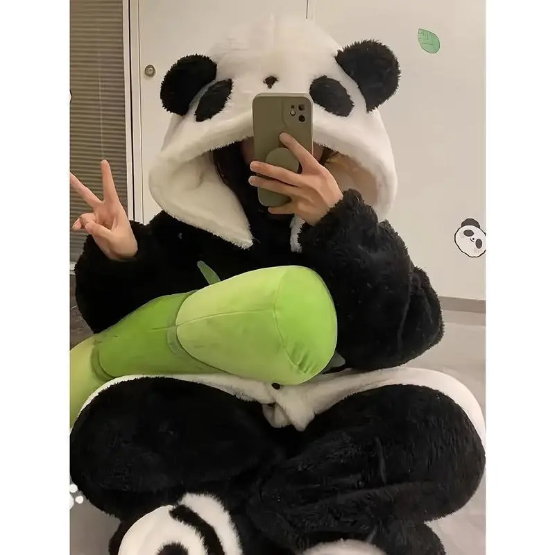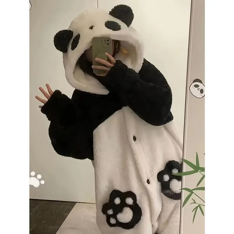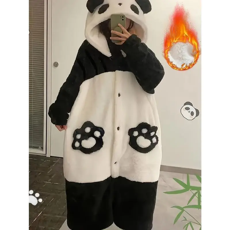 Plus Size Panda Onesie Hooded Pajama Costume - Polyester, Party Style, Slight Stretch Fabric, Printed Pattern, Loungewear Nightwear Womenswear Basic