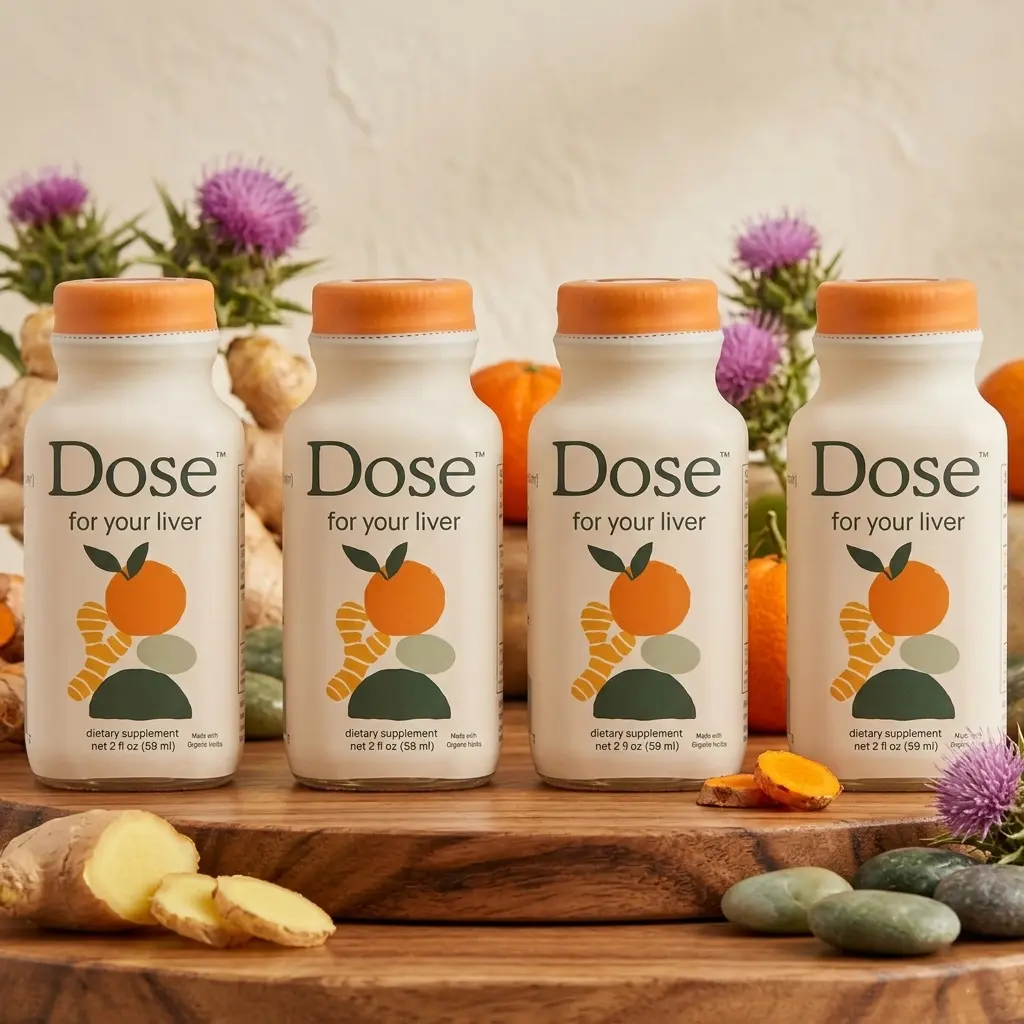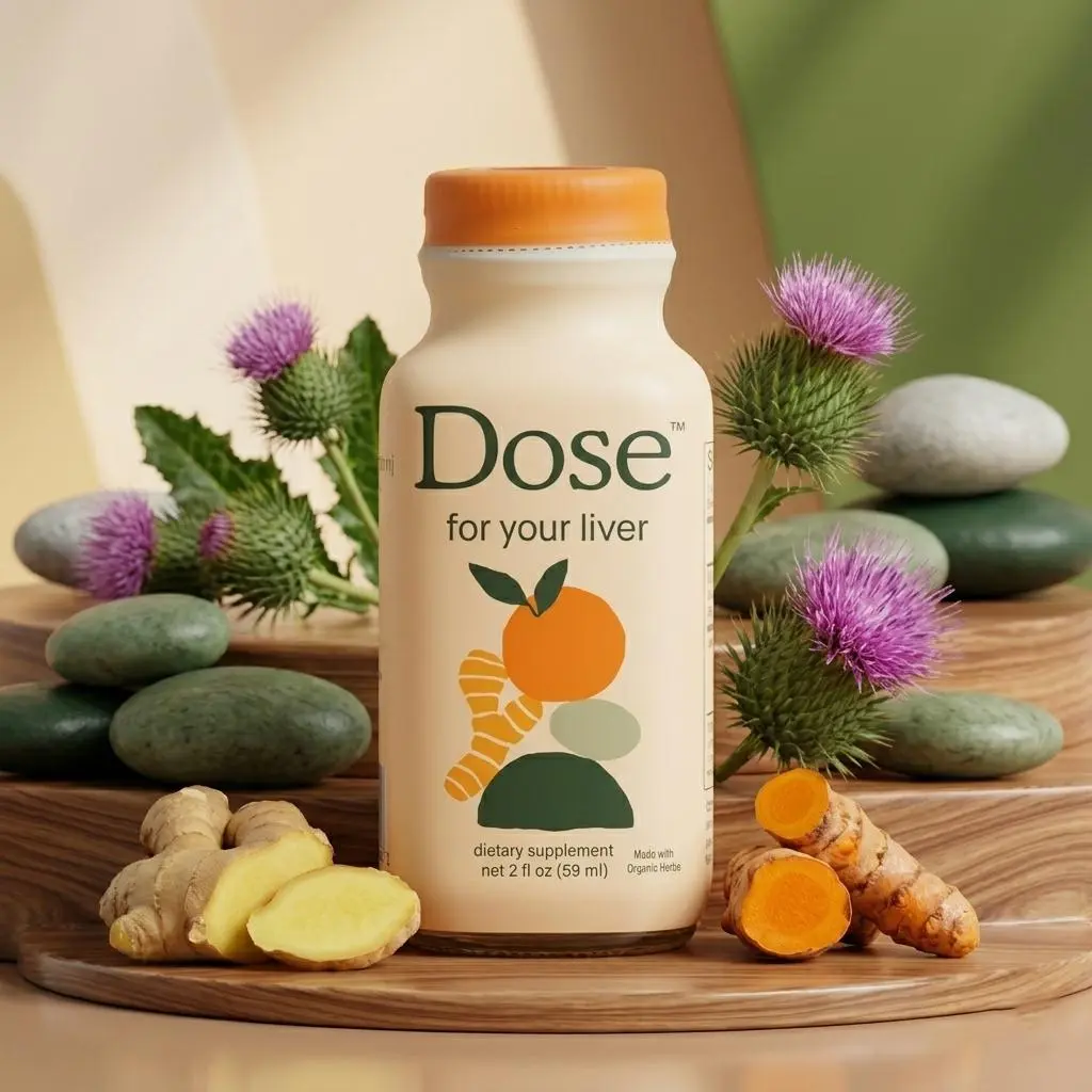 Discover the Dose for Your Liver Cleanse Detox & Repair, a 2 oz bottle packed with organic milk thistle. This supplement includes turmeric, dandelion, ginger, and orange. It supports healthy liver function, making it a vital addition to your wellness routine.