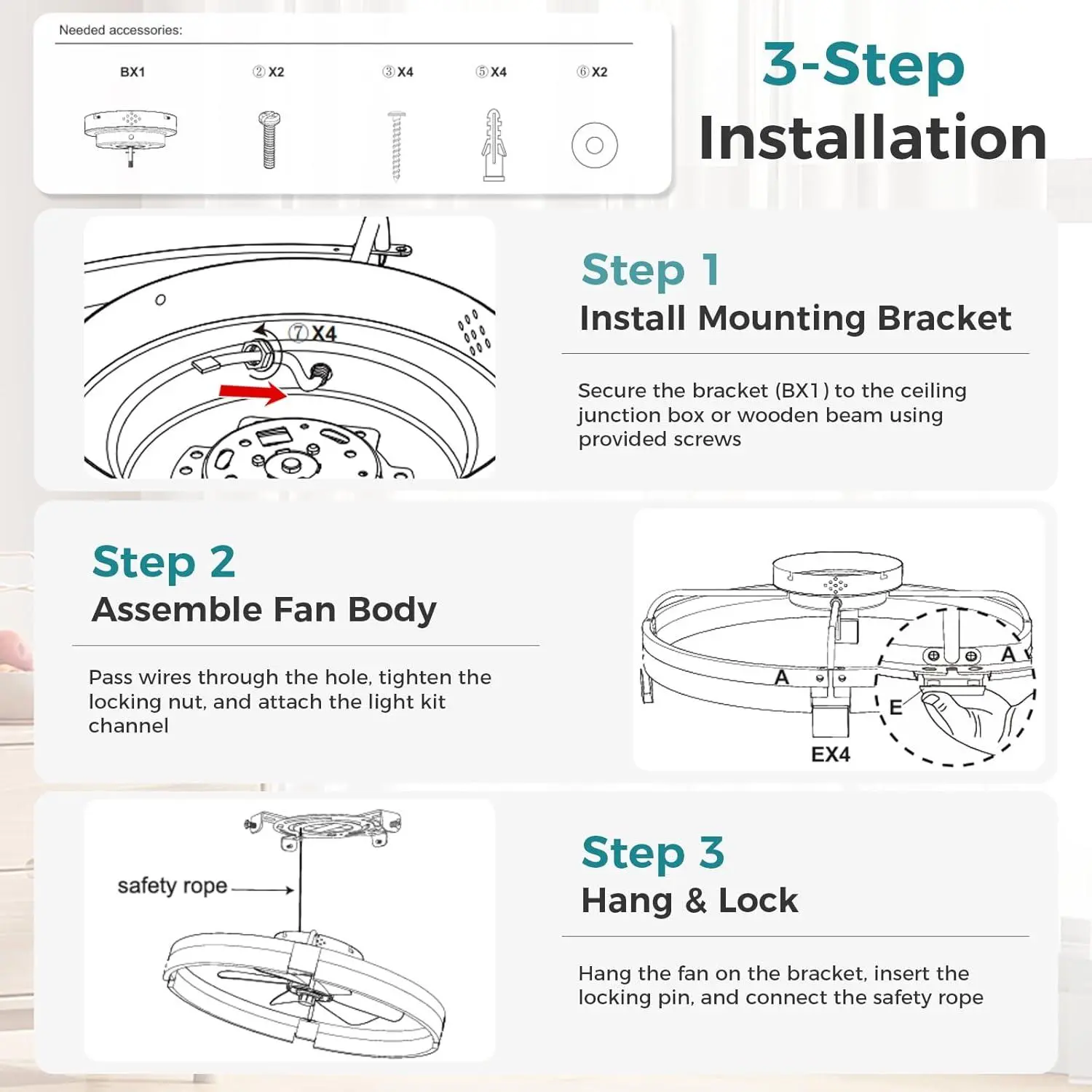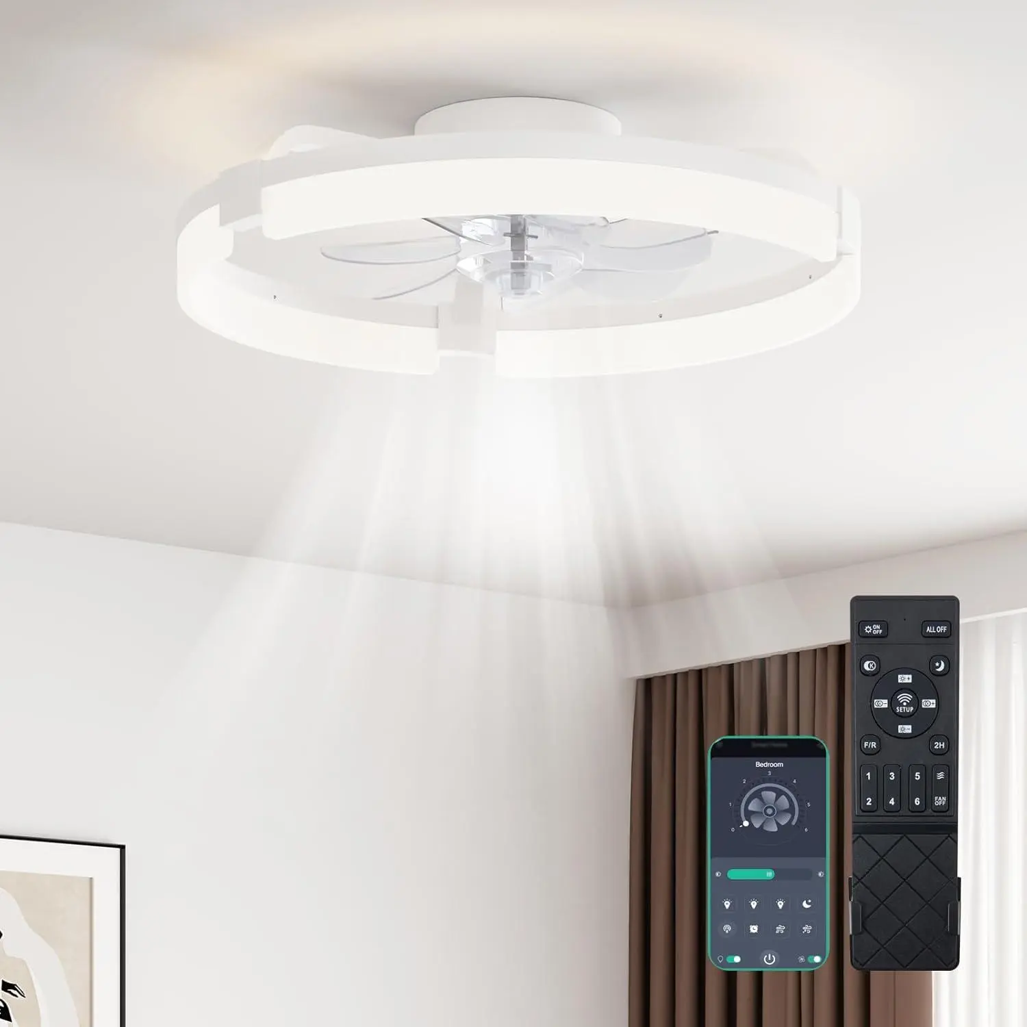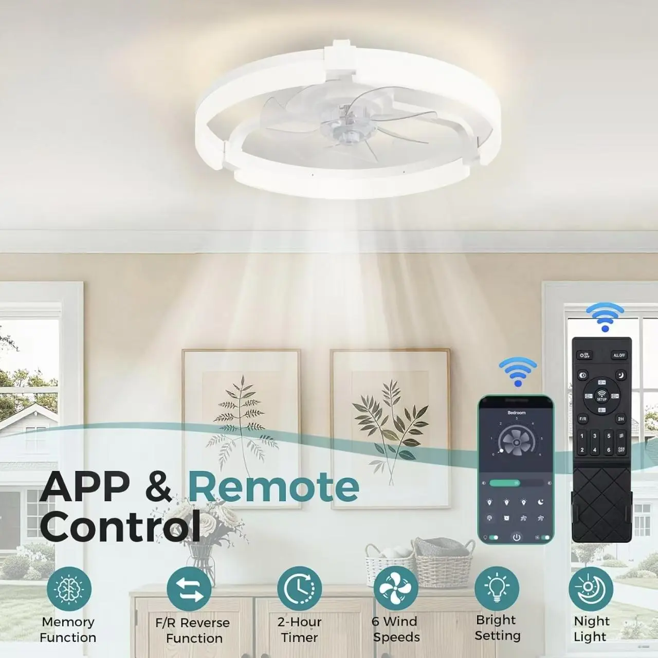 ·Dual Control: Remote or Bluetooth app for independent fan and light control.