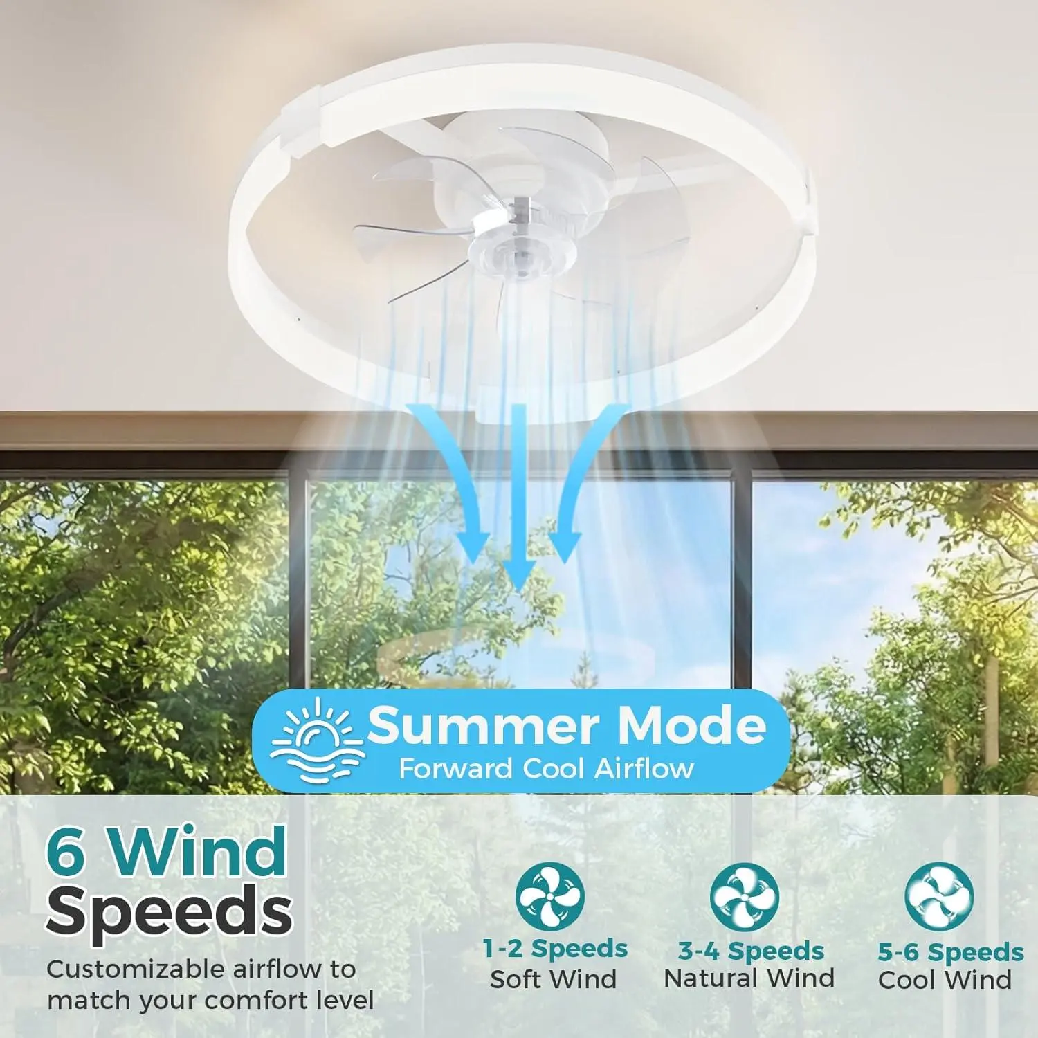 Bedrooms, living rooms, kitchens, home offices, and low-ceiling spaces. Order your smart ceiling fan with lights today!