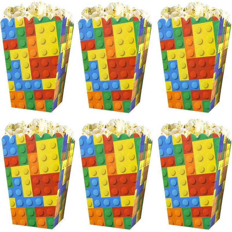 6/12/18pcs Building Block Popcorn Boxes Happy Birthday Party Kids Boys Favors Candy Box Popcorn Boxe Decorations Events Supplies