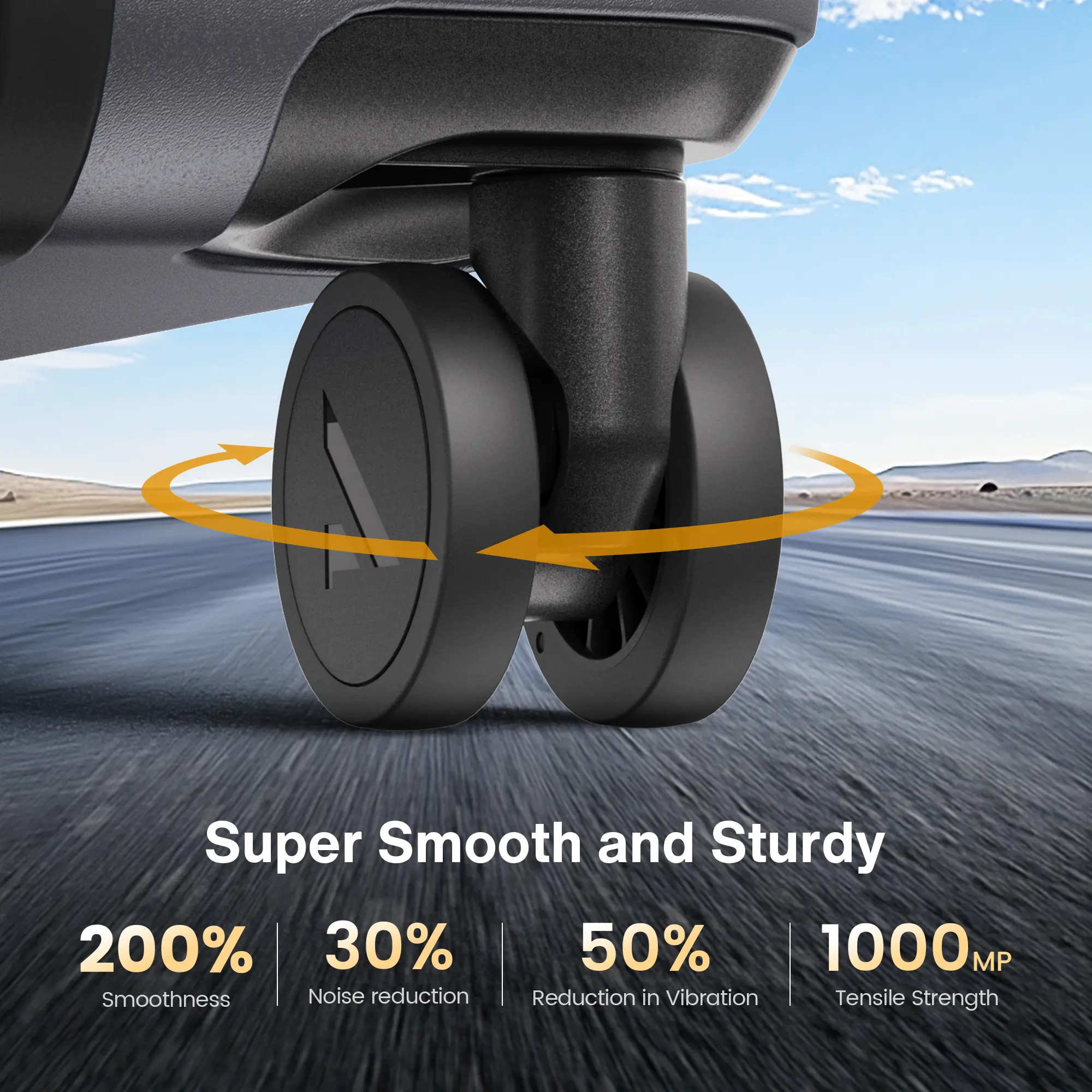 Equipped with 360° double spinner wheels made of soft TPU: