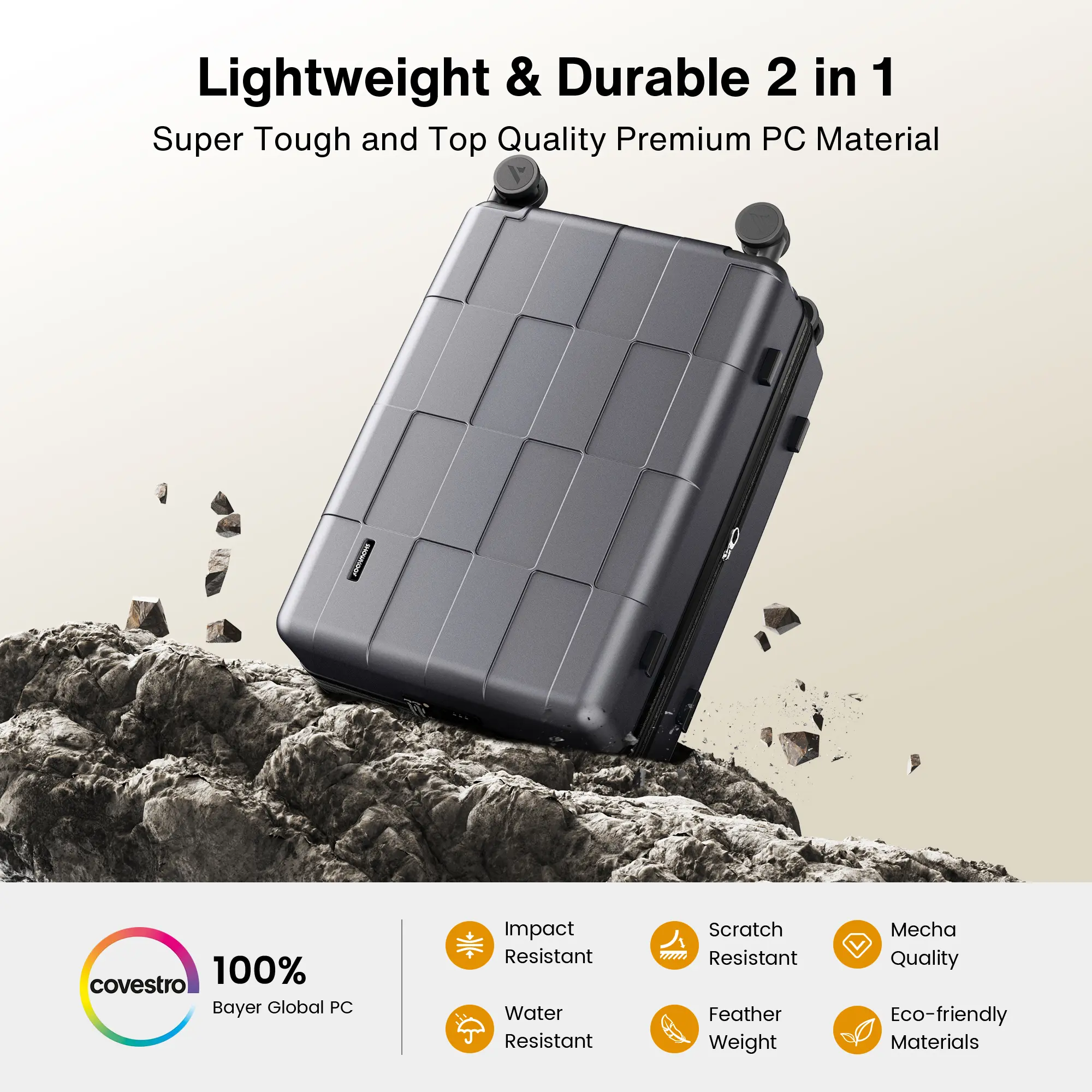 Made from extra-thick polycarbonate (PC) material, this luggage is: